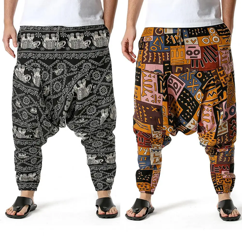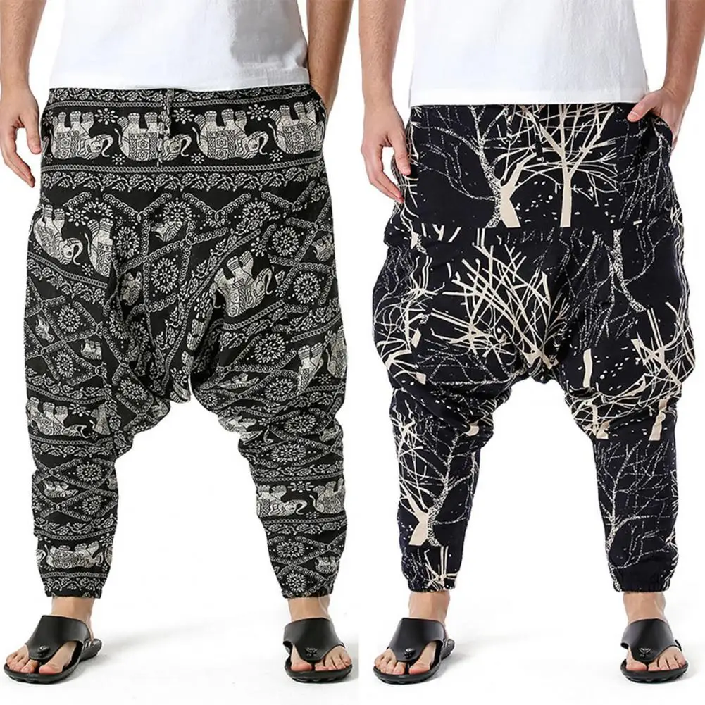 Брюки-шаровары мужские летние, с цветочным принтом, в стиле хип-хоп, свободные, для занятий йогой, 2021