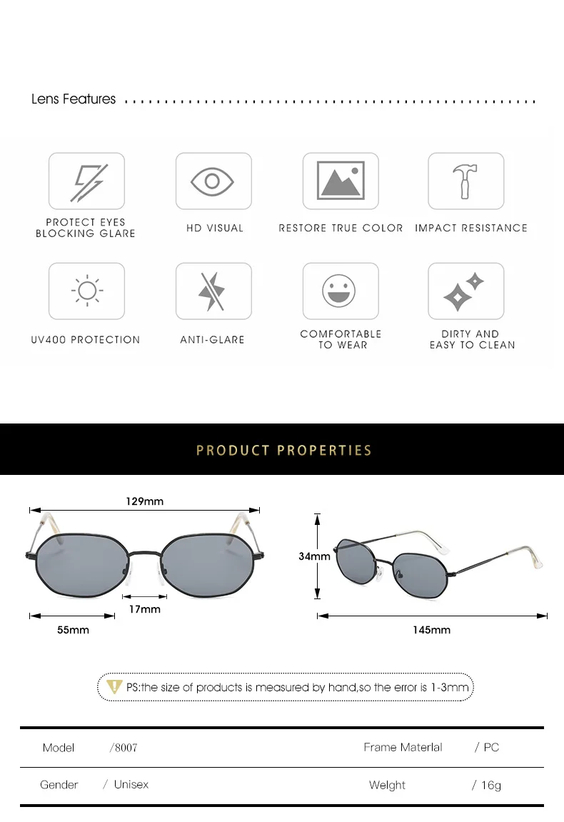 Очки солнцезащитные женские шестиугольные, маленькие Роскошные брендовые дизайнерские зеркальные солнечные очки из сплава, UV400