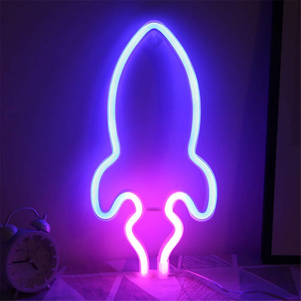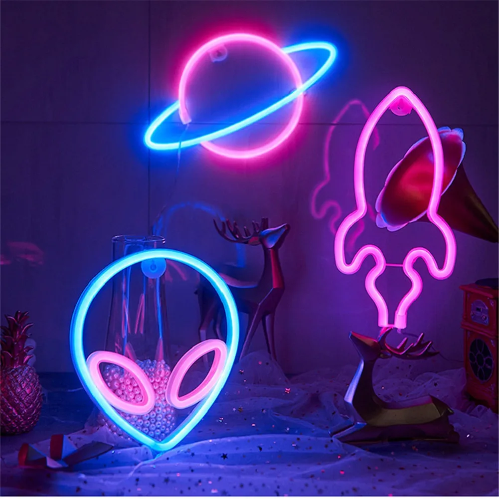 Неоновая вывеска, лицо инопланетянина, ракета, ночник для детей, украшение для спальни, настенный подвесной светильник, рождевечерние, праздничный декор, ночные лампы