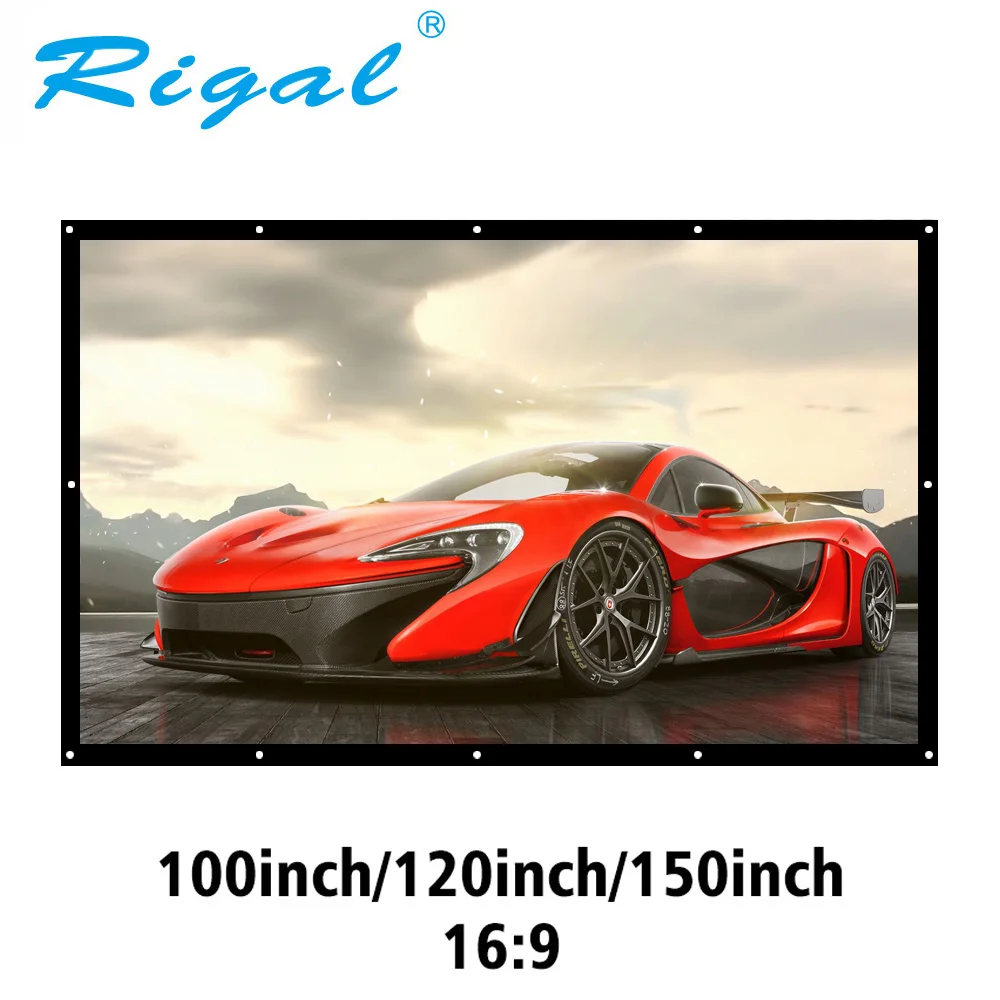 Портативный проекционный экран Rigal 100 120 150 дюймов 3D HD настенный экран проектора холст 16:9 белый экран пленка для домашнего кинотеатра