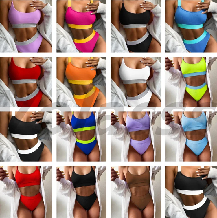 Новинка, женские стринги, купальный костюм, одежда для плавания, сексуальный лоскутный купальник, женский купальник без рукавов, женский купальник с высокой талией, бикини