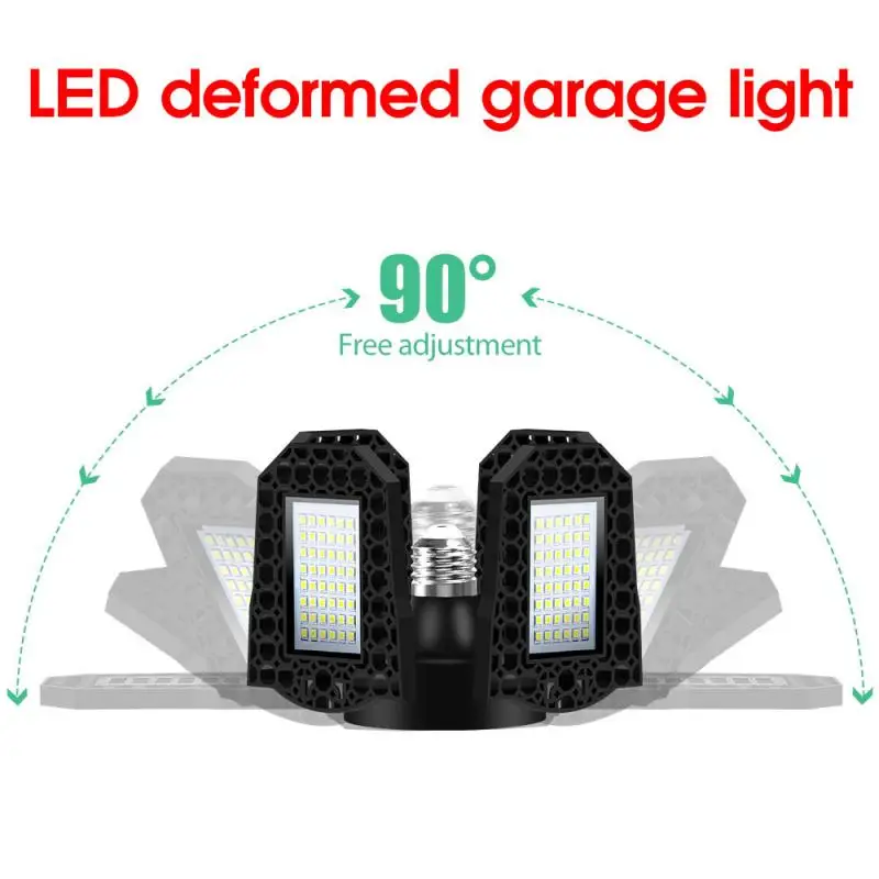 Основные сведения: супер яркий светодиодный гараж светильник с 3 ультра-яркая подсветка с регулируемым Abs светодиодный лампы головок-это особенности светодиодный технологии с 3*36/3*42/3*48 шт. наивысшего качества диоды для подавления переходных скачков напряжения, 8000 Люмен, таким образом, 3000K 6000K Дневной светильник, CRI80, средняя база E26/e27, просто завинчивайте, затем можно использовать. Доступны для 85 в и 265 в области ввода, 50000 часов срока службы для вашего гаража, обеспечивая лучший опыт внутреннего освещения.