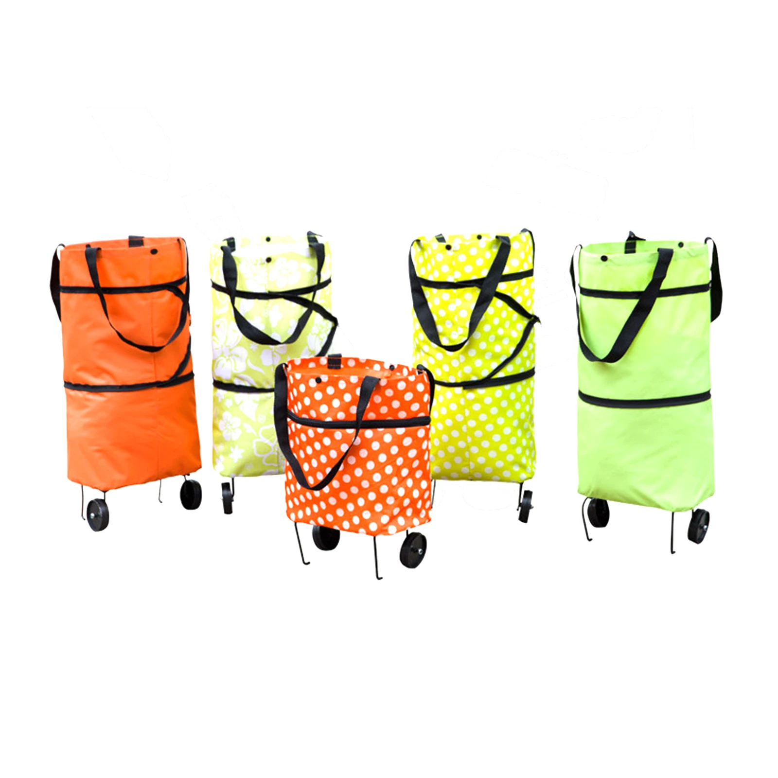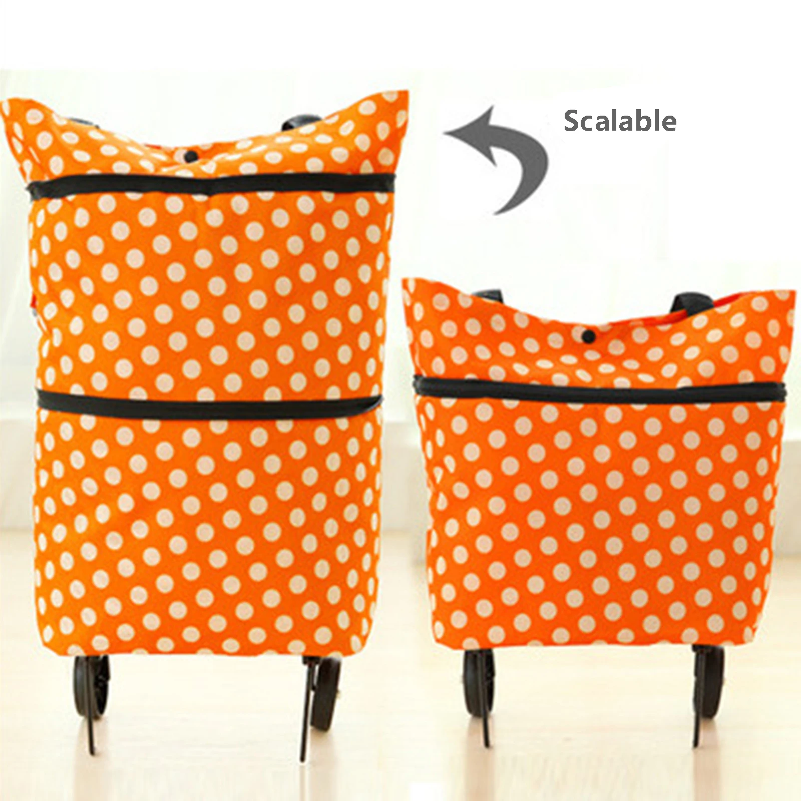 Складная сумка для покупок, однотоннаяс принтом, Портативная Сумка-тележка со складными колесами, зеленаяоранжевая