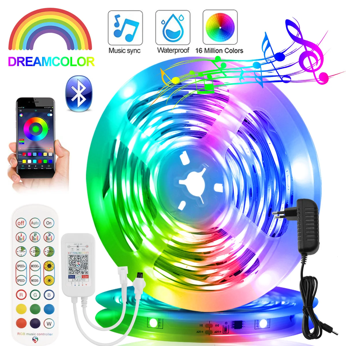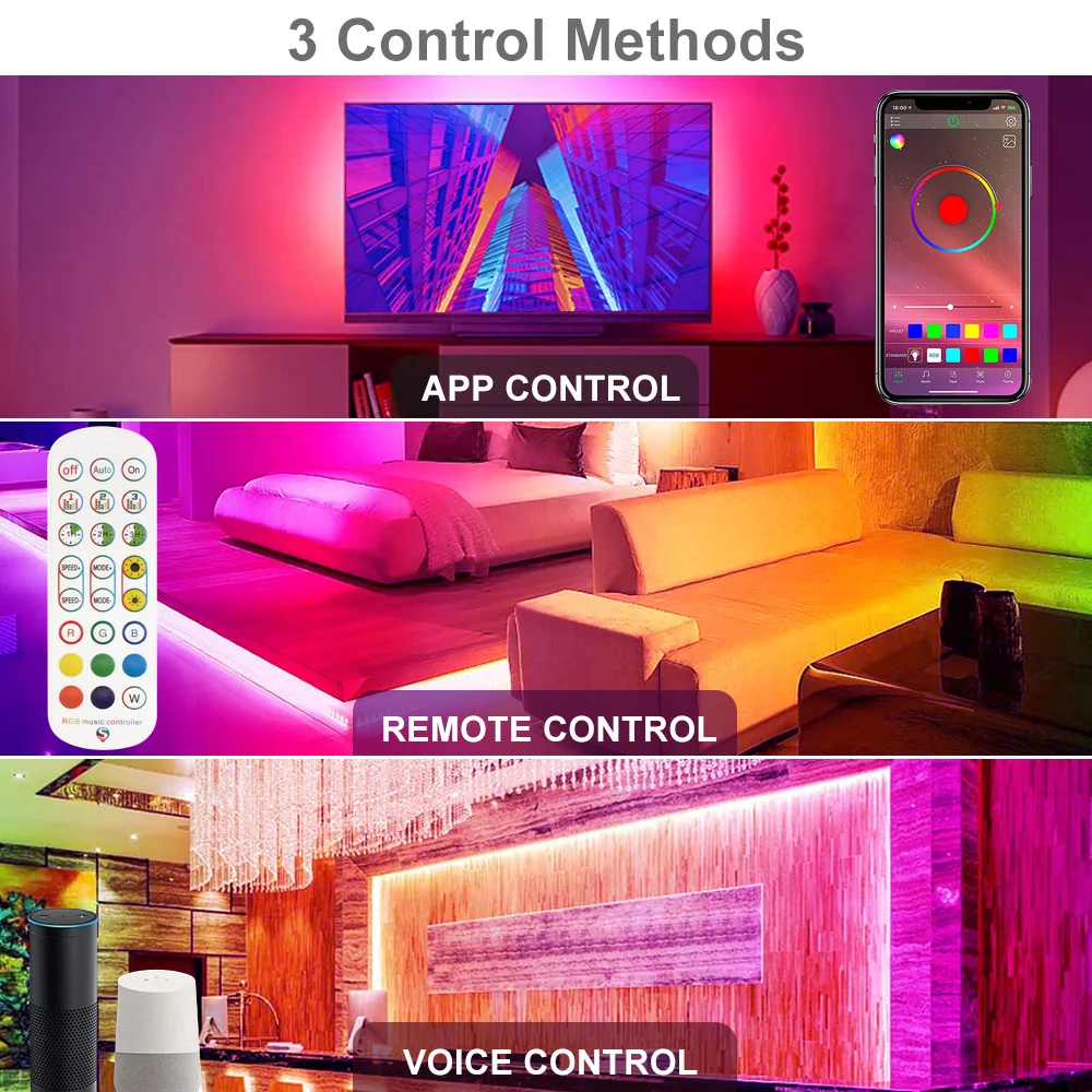 Вы можете установить таймер для включения/выключения светильник s с вашим любимым цветом, вы также можете управлять светильник полосы в пределах чувствительного расстояния 50 футов через приложение телефонаПримечание: управление музыкой не может быть использовано