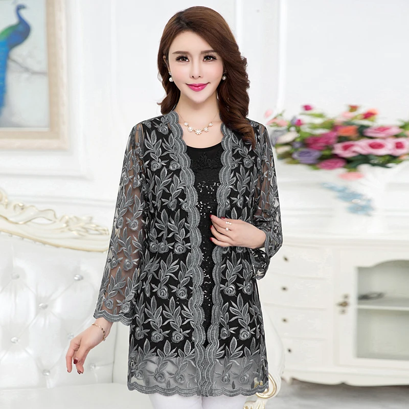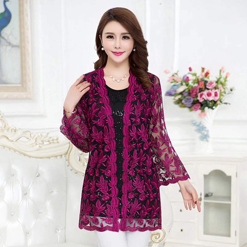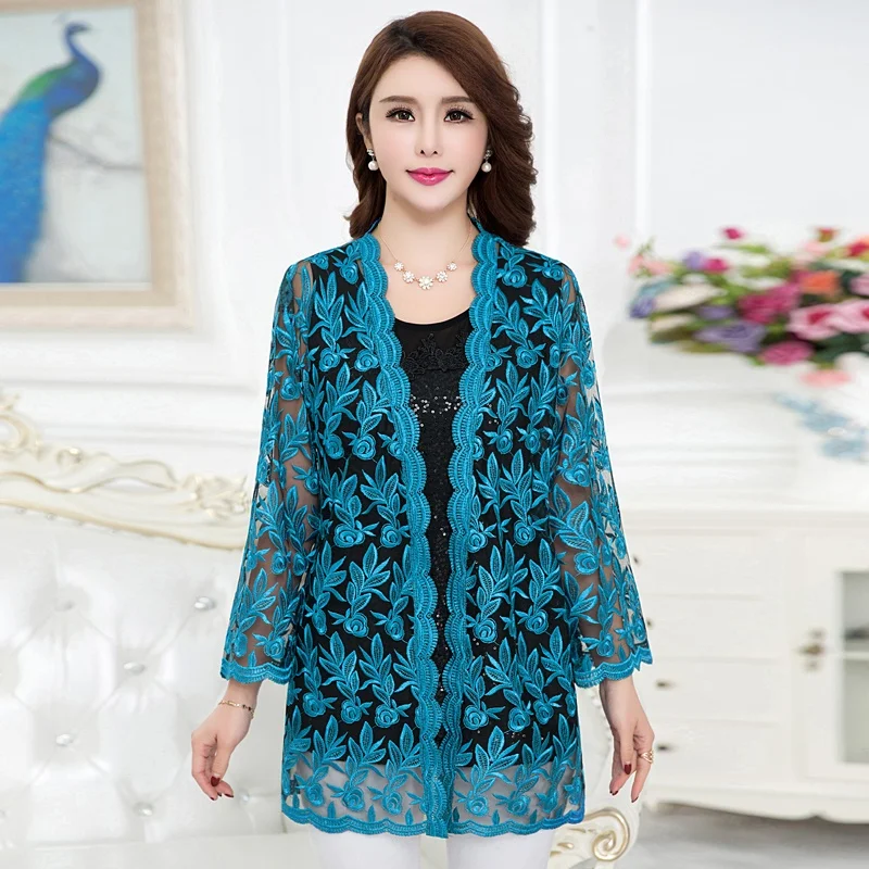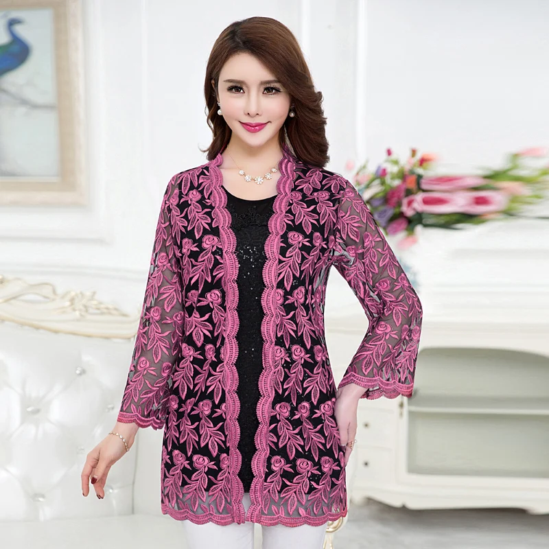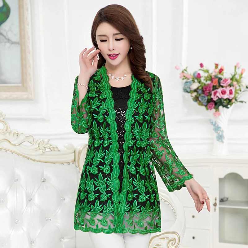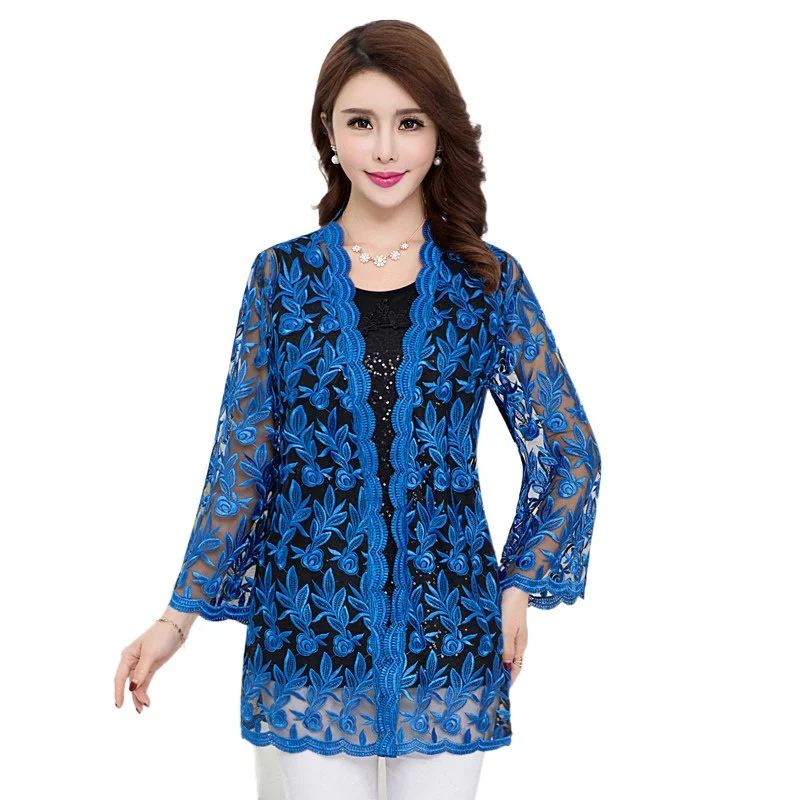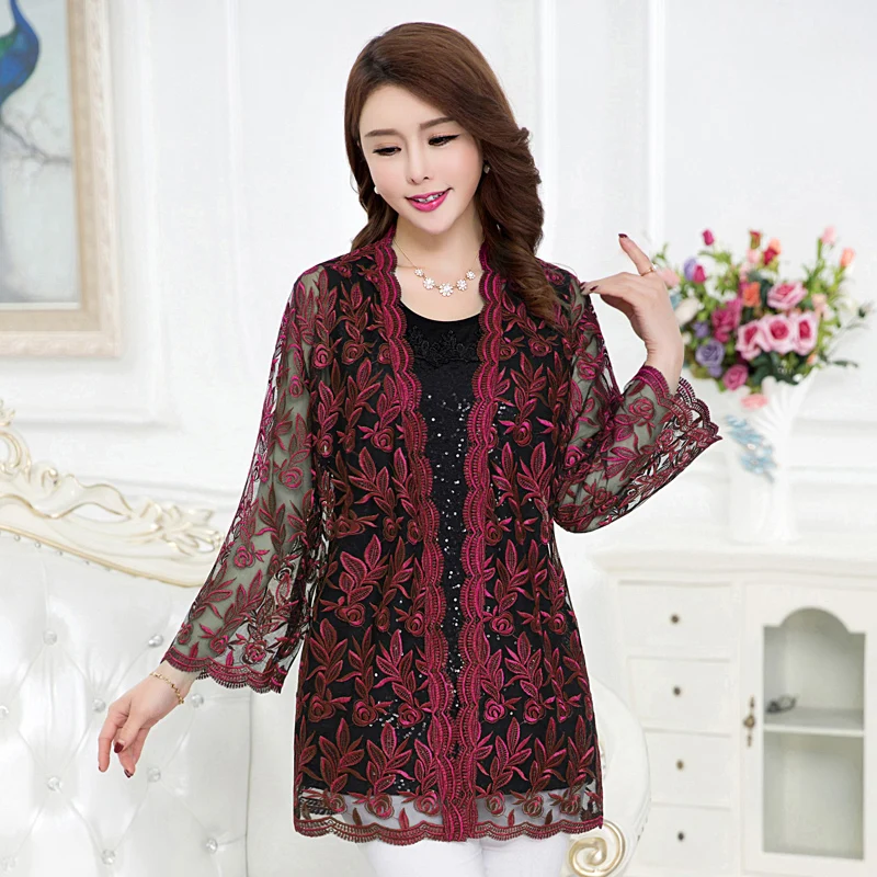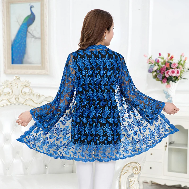 Женский кружевной кардиган Lingwave, повседневный винтажный жакет с вышивкой, пальто, 2021, 5XL, лето размера плюс