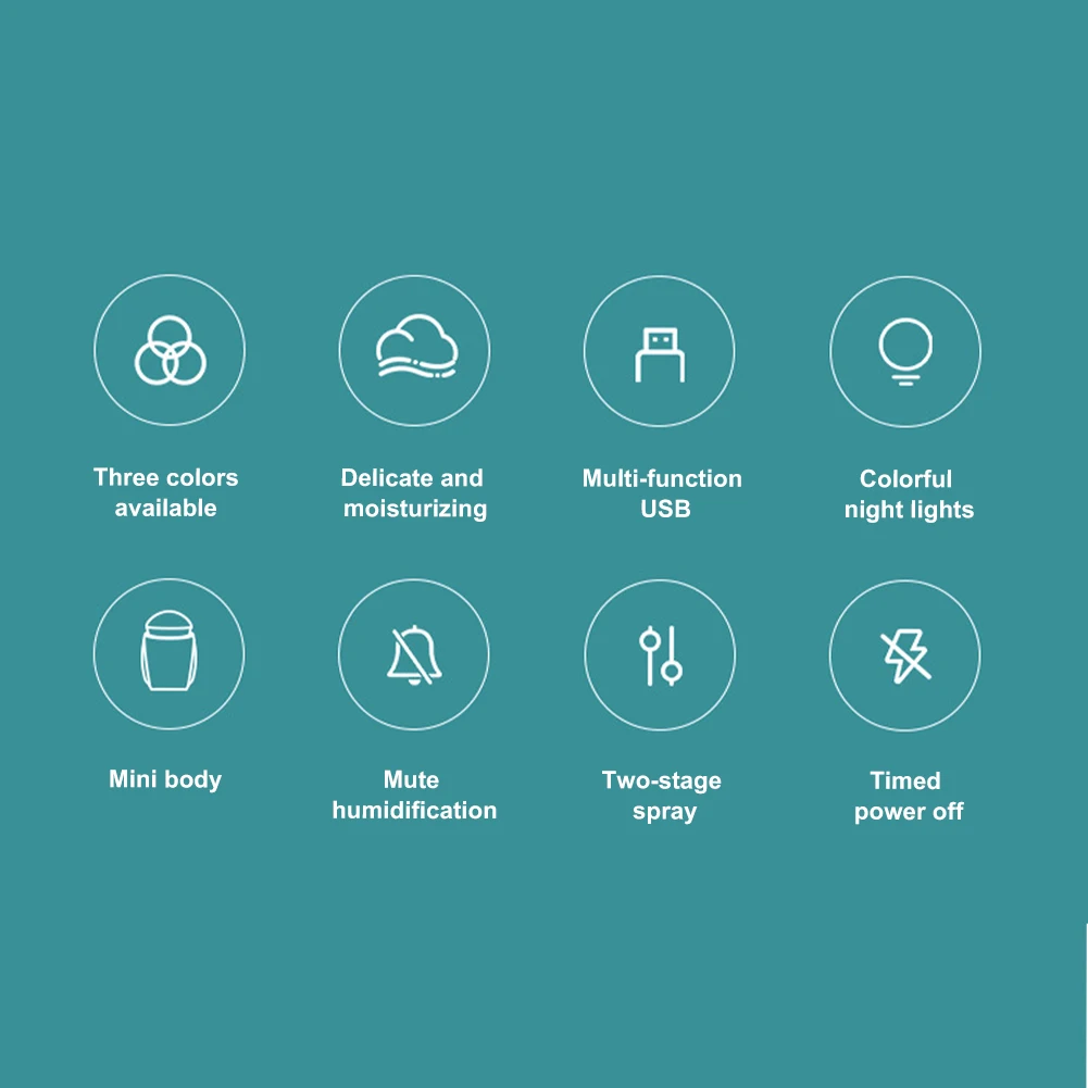 * 1. Мини-USB-увлажнитель с USB-выходом, умным светодиодным индикатором, низким уровнем шума при работе, который не мешает работе и дребезжанию.