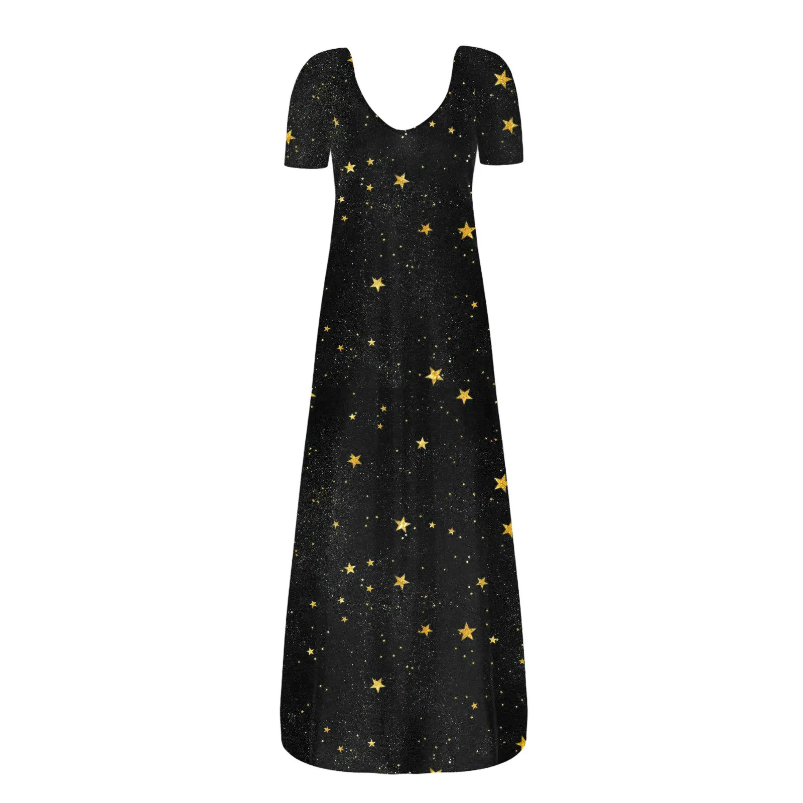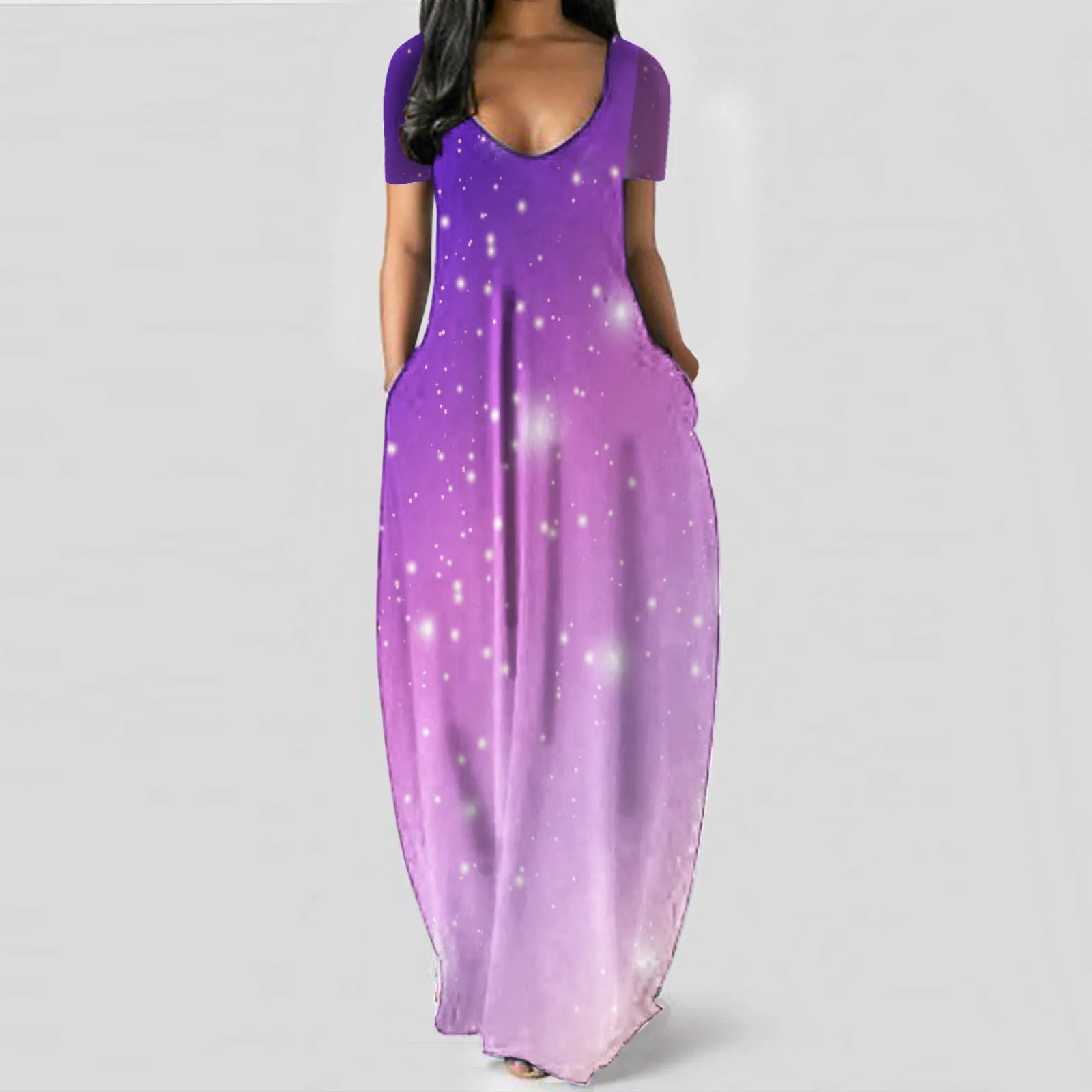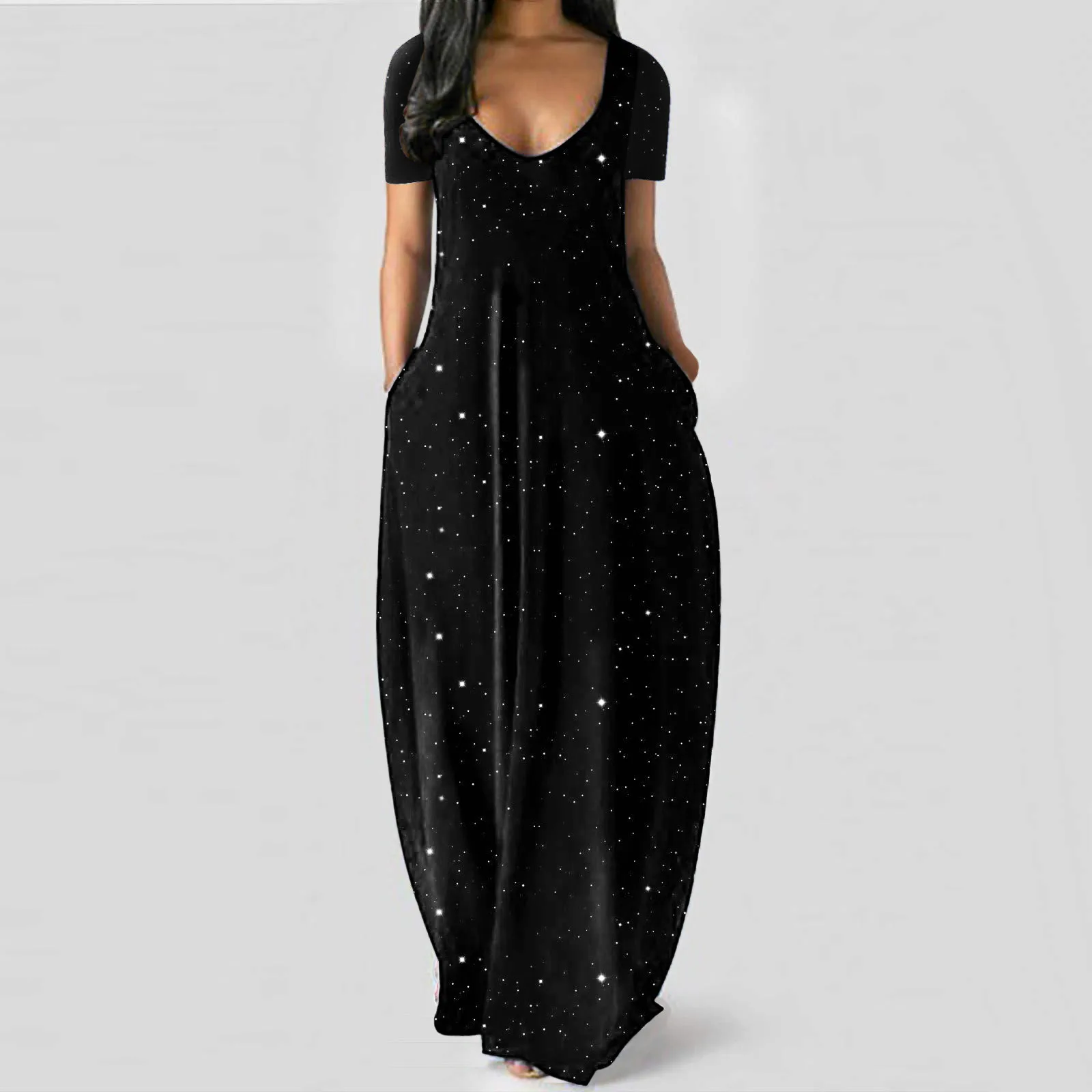 Платье Макси женское, с коротким рукавом, в пляжном стиле, с карманами