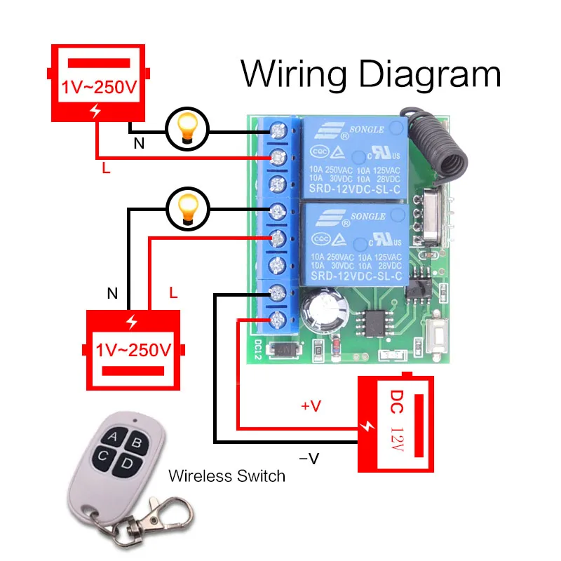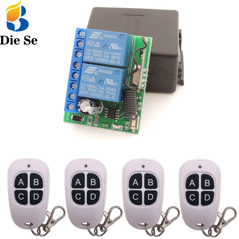 Умный дом светильник с пультом дистанционного управления Управление DC12V 10A 2 банды Беспроводной приемник релейная плата и брелоков для гаража Электрический дверной замок