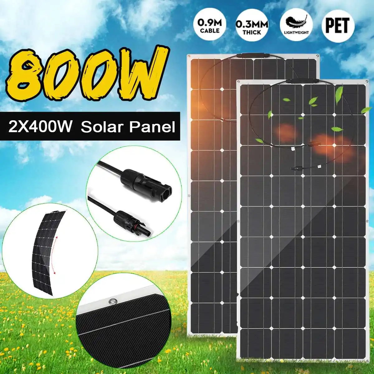 Солнечная панель 800 Вт 400 Вт, 18 в, монокристаллическая Гибкая солнечная панель, полный комплект для дома, солнечной батареи, смартфона, автомобиля, RV, зарядное устройство