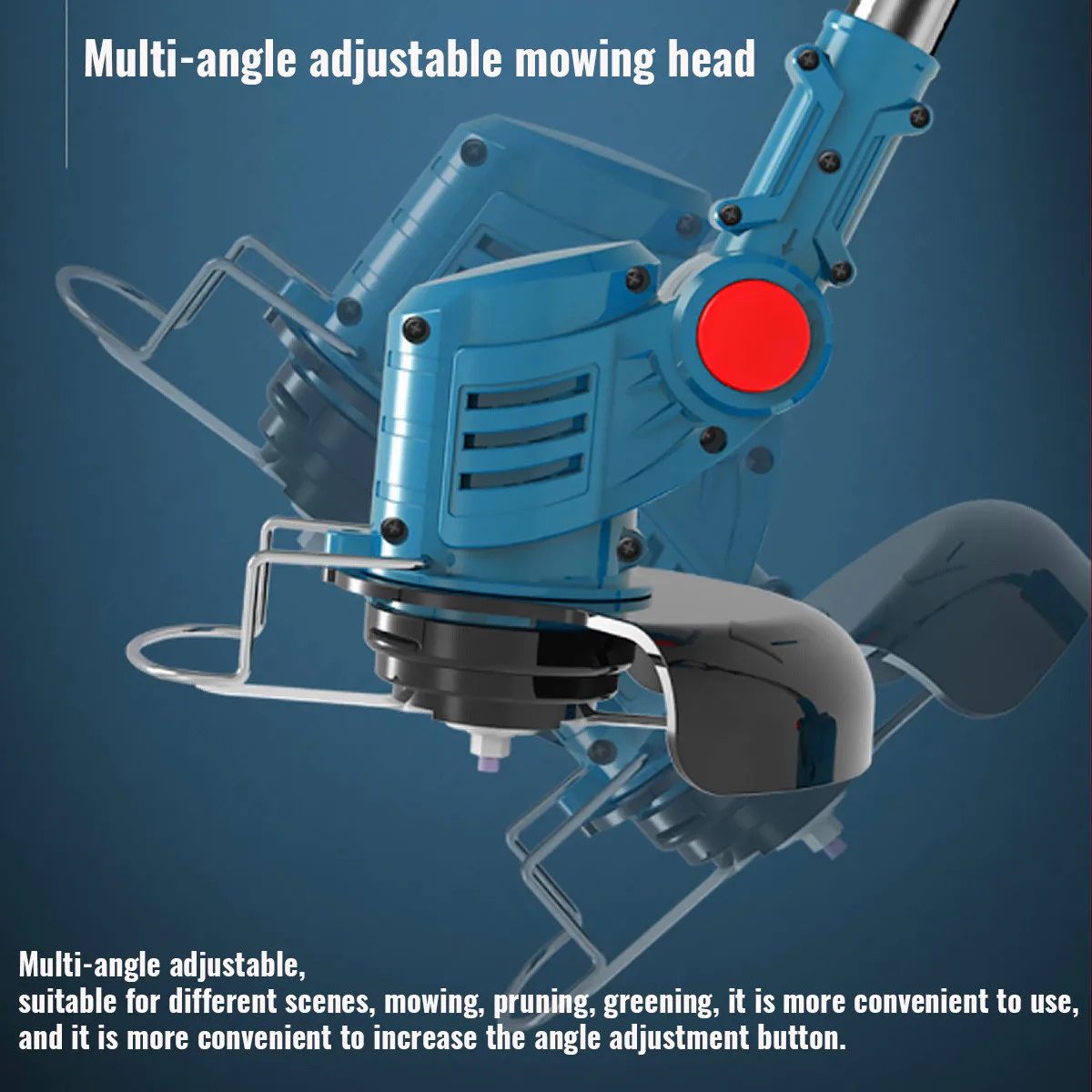 Особенности -Триммер беспроводной, потому что он перезаряжаемый. Больше нет громоздкой и громоздкой проводки (батарея в комплект не входит)-Масштабируемый, удобный для переноски, можно растянуть 99-135 см в длину-Триммер не использует топливо, он экономит ресурсы и деньги и является экологически чистым.-Головку можно отсоединить до размера, который вы носите с собой, что упрощает обрезку.-Многоугольная Регулировка режущей головки, подходит для различных сцен, скашивания, обрезки и озеленения, более удобна в использовании, удобна Кнопка регулировки угла наклона-Дополнительная ручка для бесплатной регулировки.-Легко работать