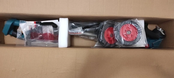Посылка 1 беспроводной электрический триммер для травы(Батарея в комплект не входит) 4 х пластиковых косилки2 х лезвие для скашивания металла1 х лезвие пилы из сплава1 х гаечный ключ