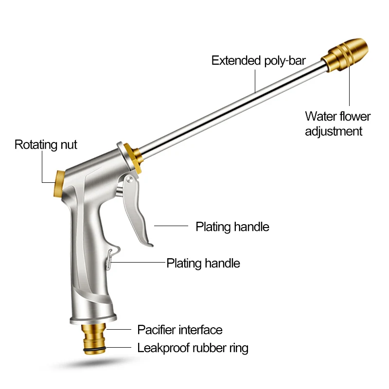 Шланг для мойки высокого давления, регулируемый, с эластичным распылителем, с металлической насадкой