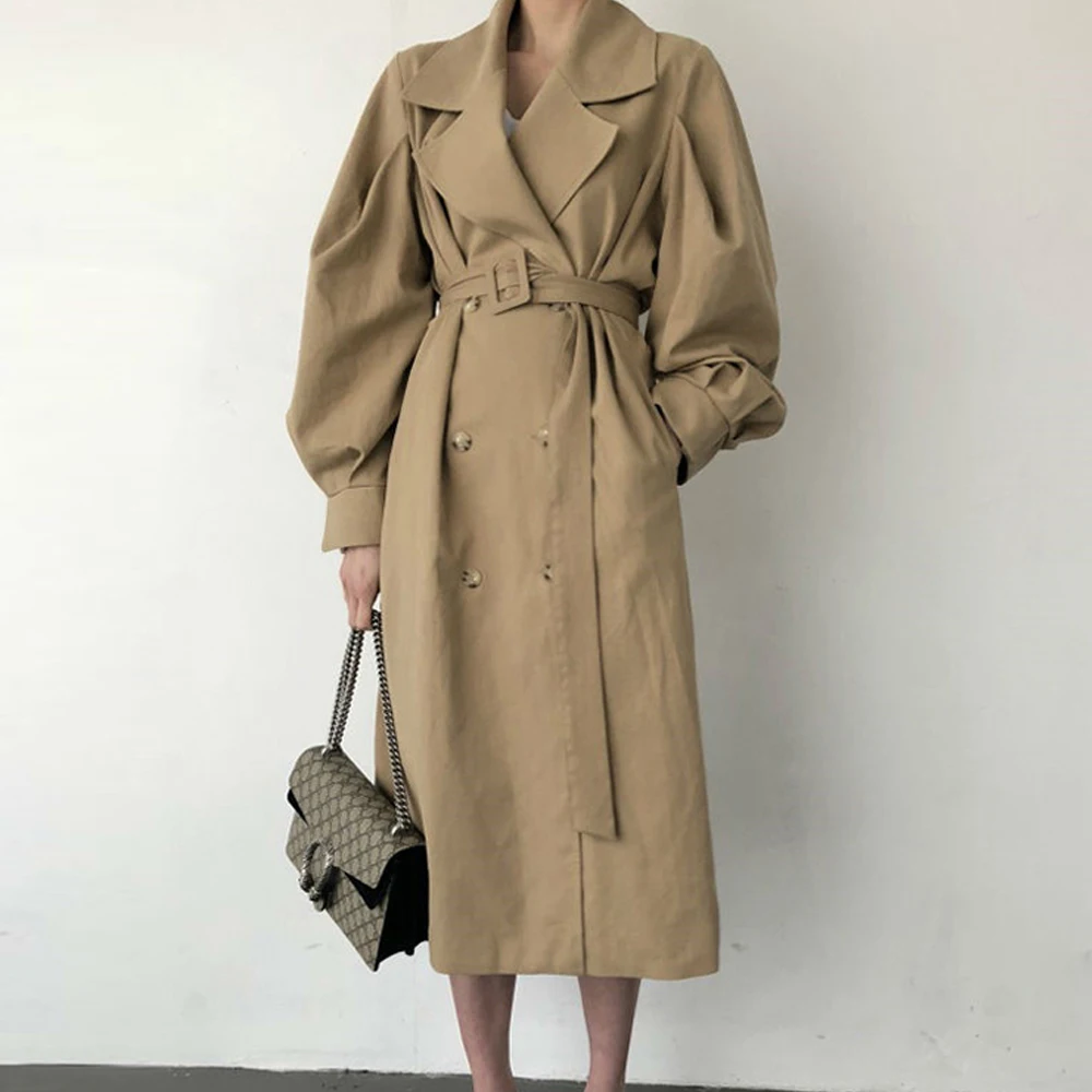 Женский двубортный тренчкот, Элегантное длинное пальто оверсайз, Ко...