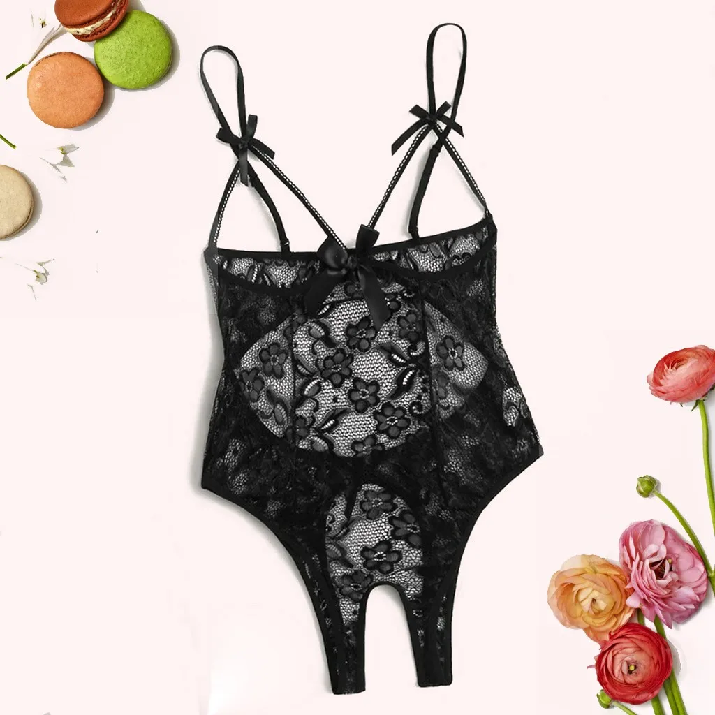 Женское Кружевное боди с бантом и открытой промежностью, боди с открытой спиной нижнее белье-комбинезон
