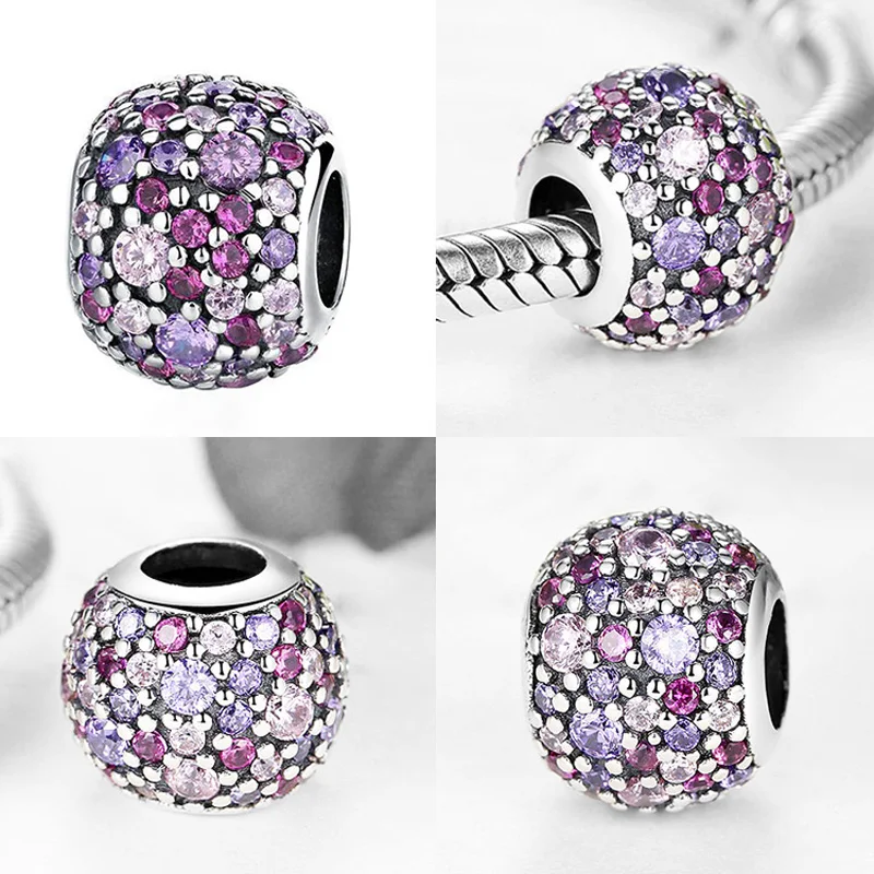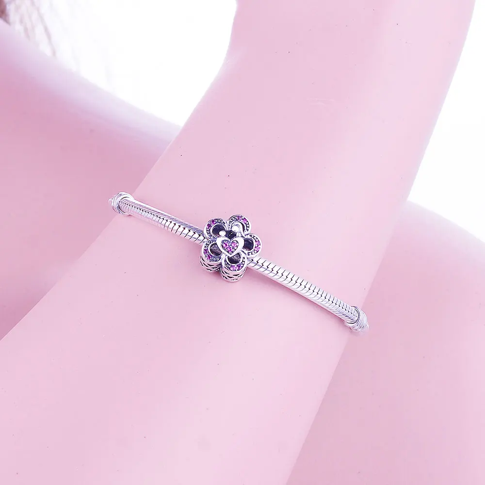 Новый розовый цветок маргаритки, зажим с четырьмя клеверами, сердце, бусины-грибы, подходят к оригинальным шармам Pandora, серебро 925, браслет сделай сам, женские Украшения
