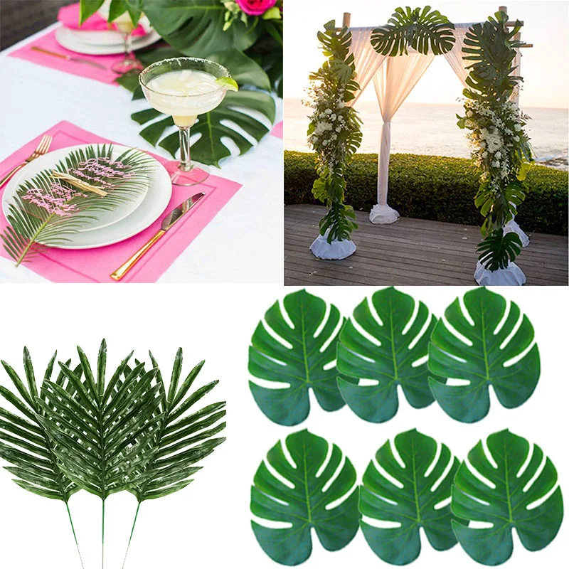 Листья тропической пальмы 14 дюймов большой монстера искусственное растение с листьями Свадебныевечерние украшение стола Гавайскую принадлежности для сада