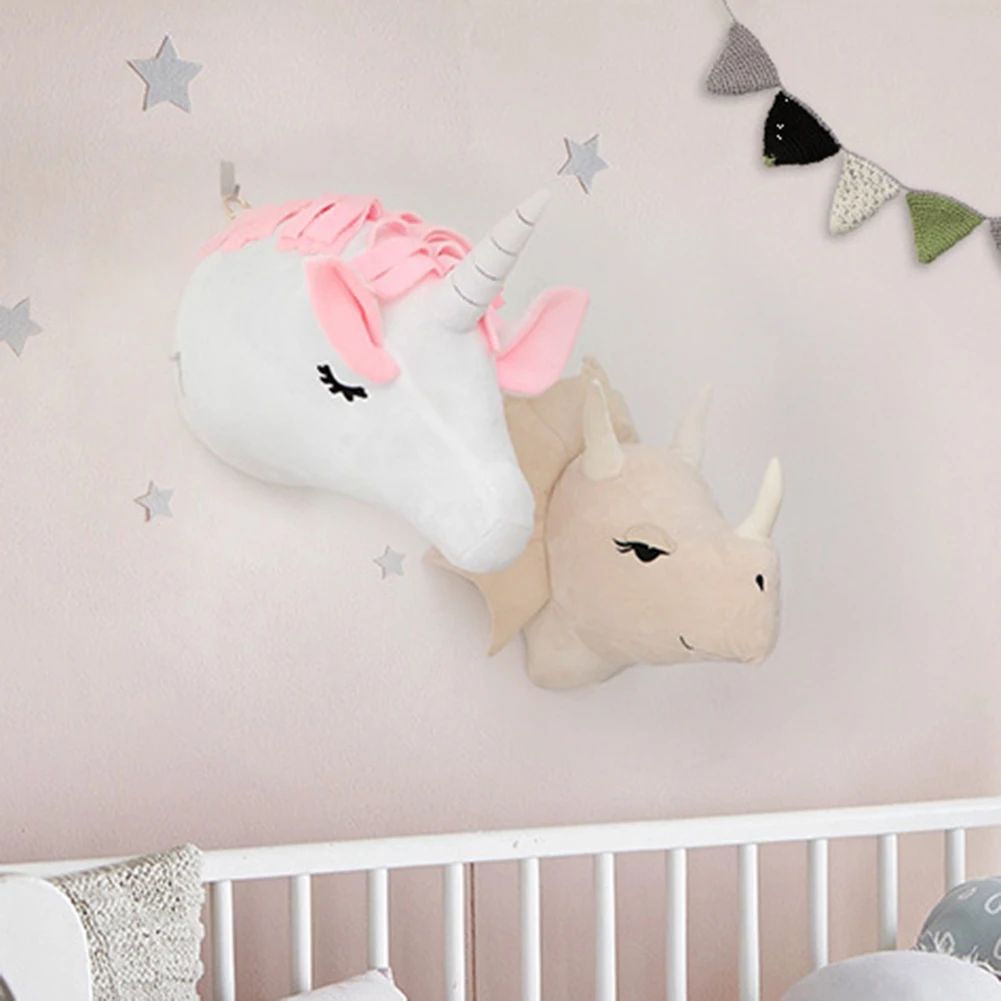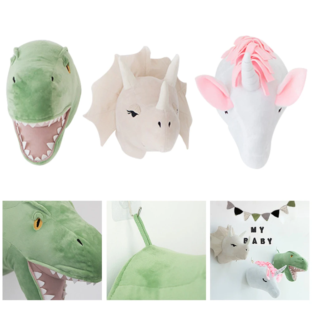 Плюшевая голова, динозавр, носорог, единорог, детская комната, Декор, настенные подвески для детской спальни, настенное крепление, детские мягкие игрушки