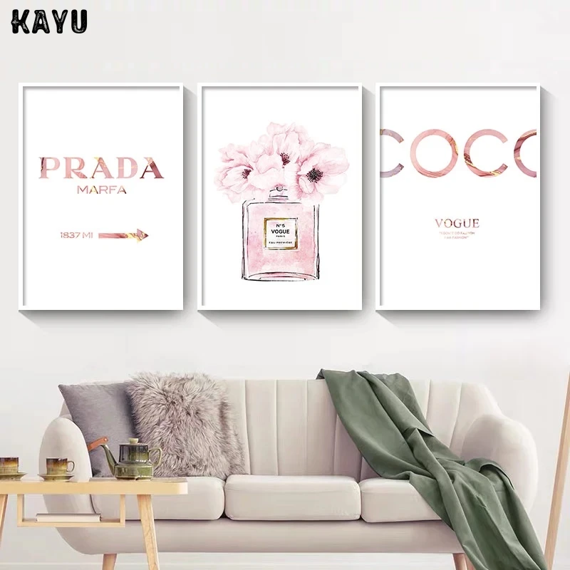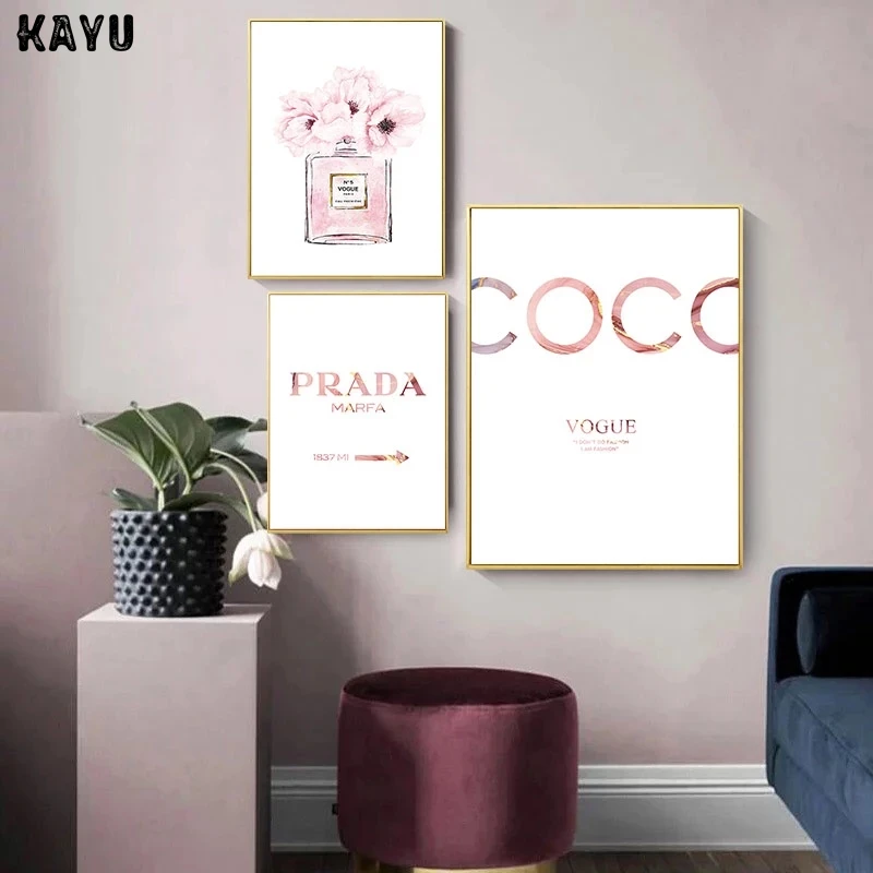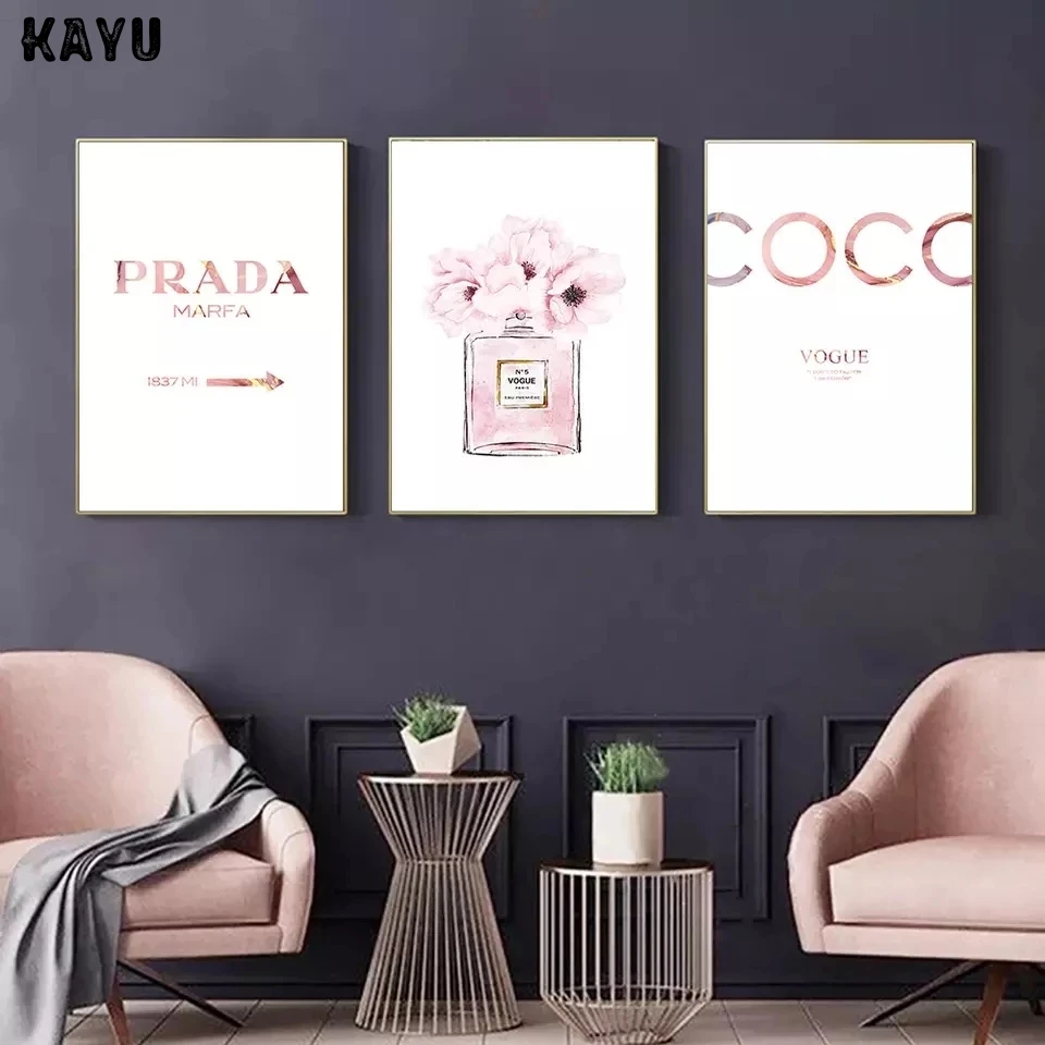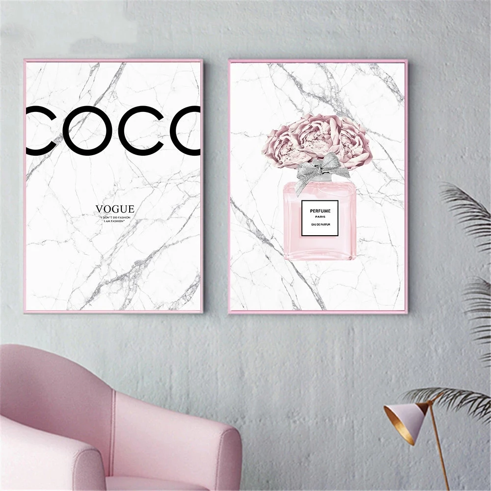 Модные плакат флакон духов из плотной ткани с принтом цветы, пионы на стены картина стеновые художественная фотография Vogue Плакаты для украшения в спальню