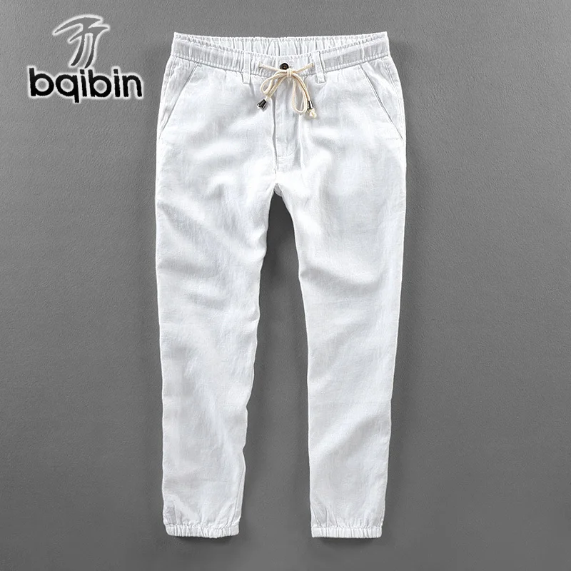 Летние Осенние Брендовые мужские льняные брюки длиной до щиколотки, повседневные модные мужские брюки, льняные одноцветные брюки, мужские брюки 30-40