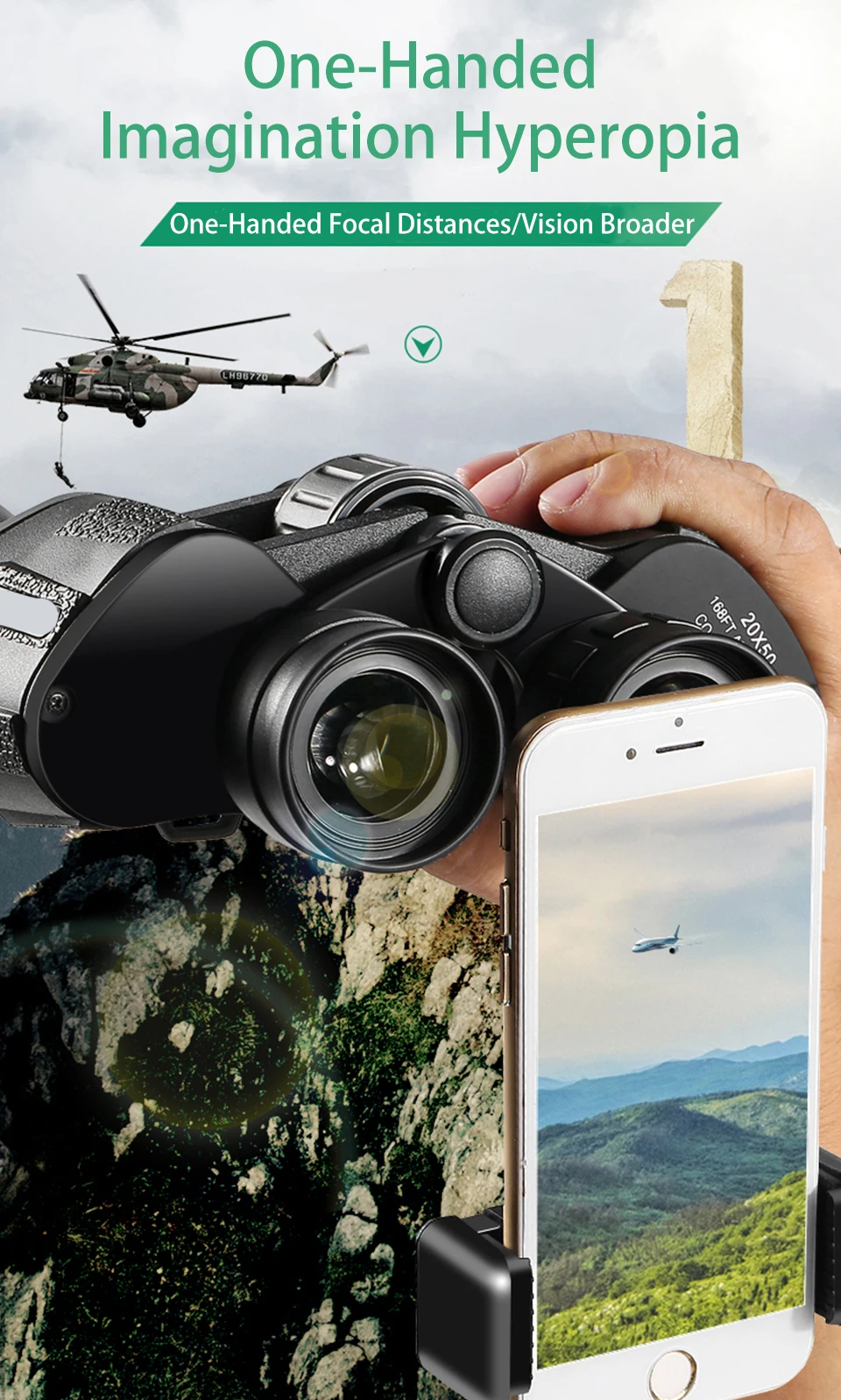 Бинокль 20x50, дальность 390000 м, широкополосный, зеленая пленка, для кемпинга