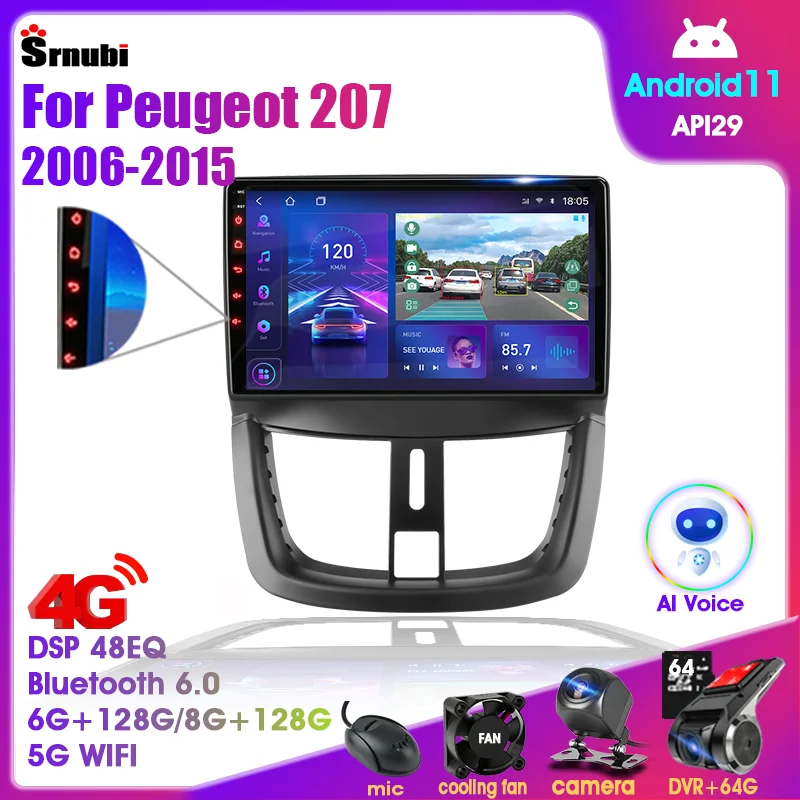 Автомагнитола на Android 11 для Peugeot 207 CC 2006-2015 мультимедийный видеоплеер 2 Din DVD аудио колонки Carplay стерео аксессуары