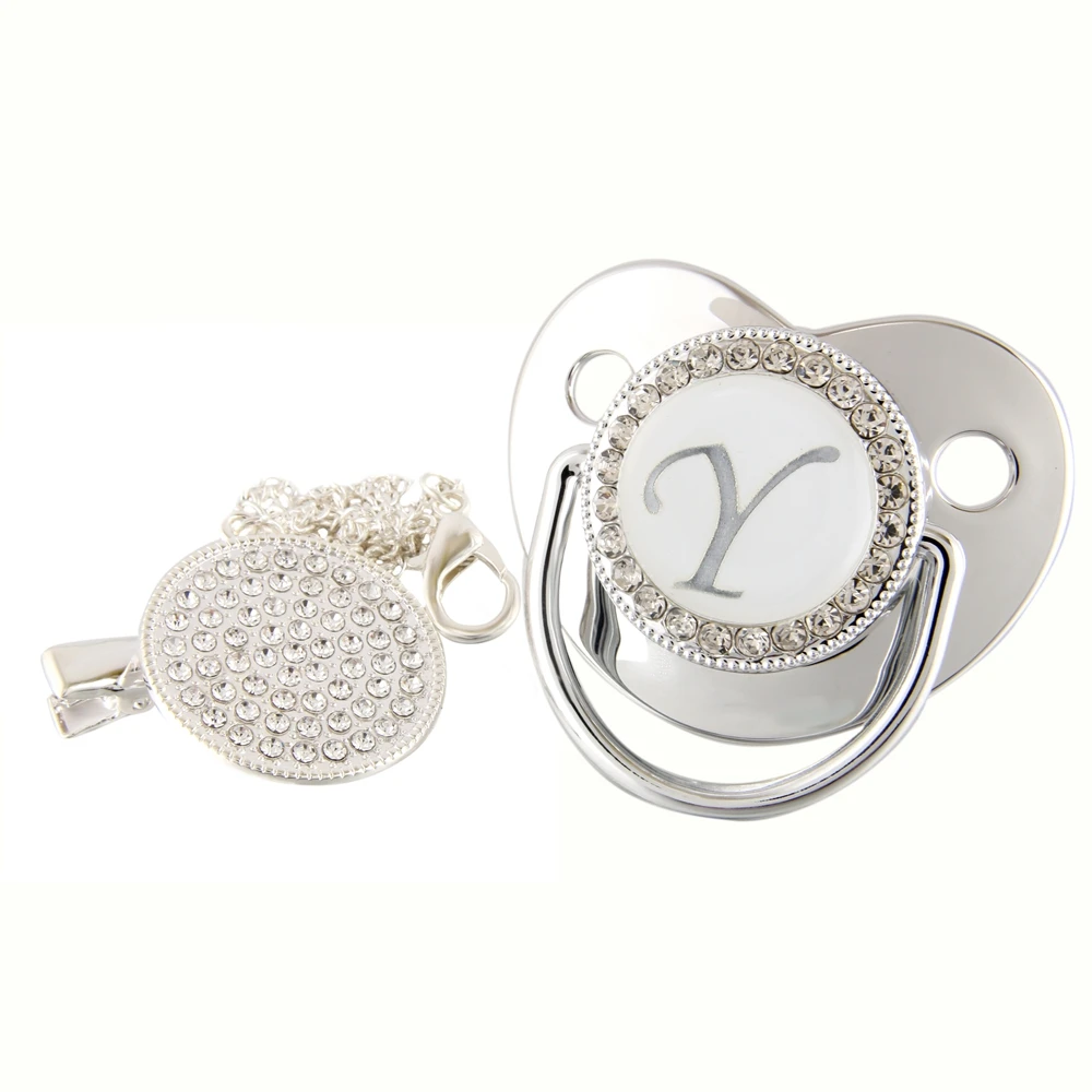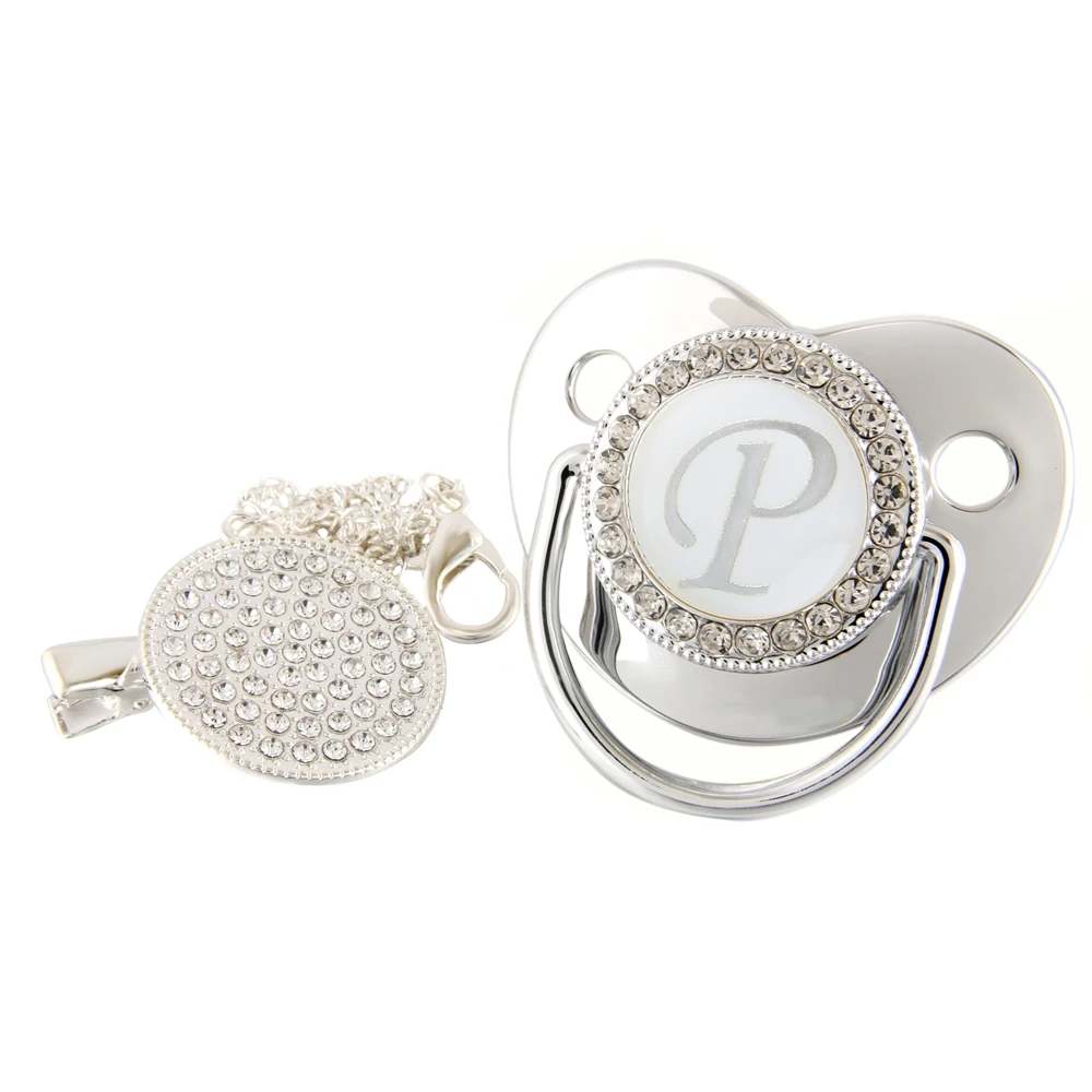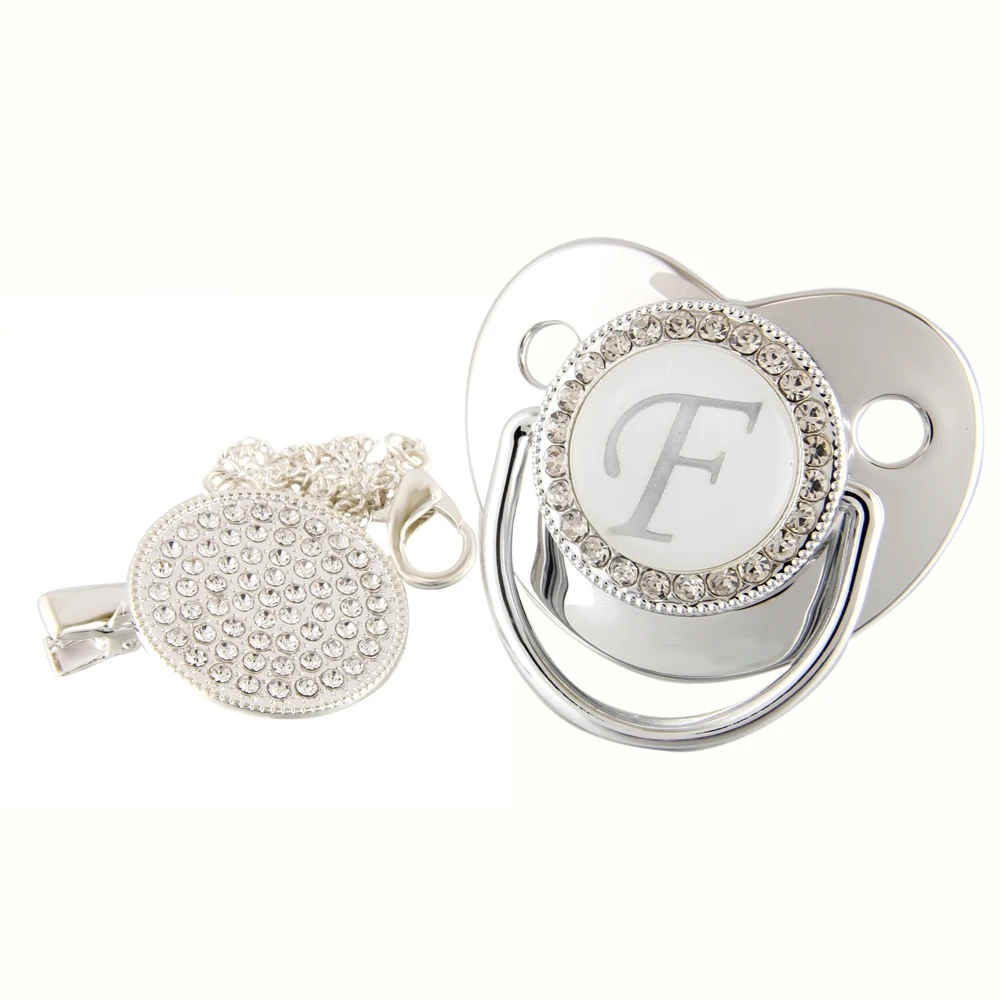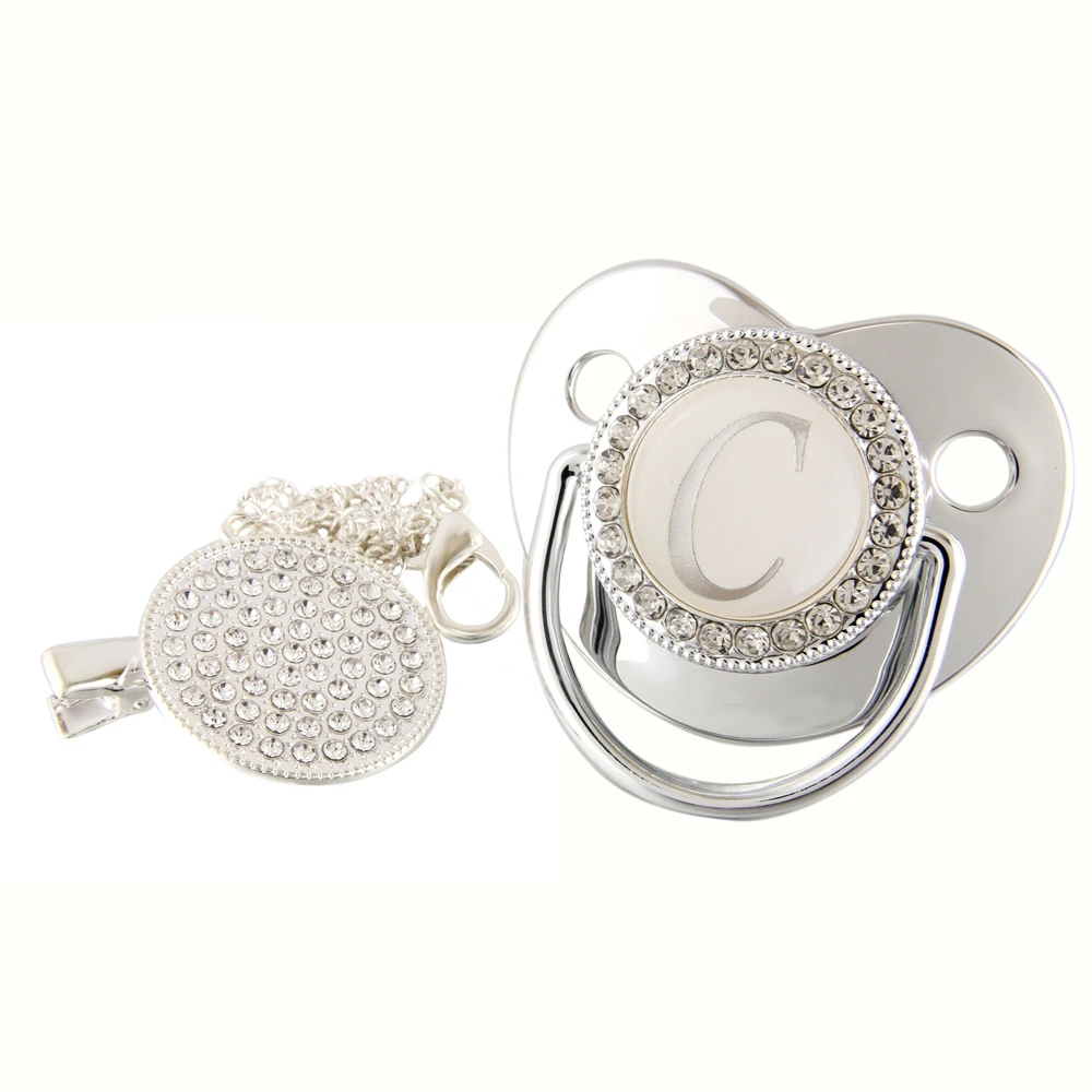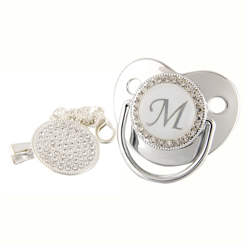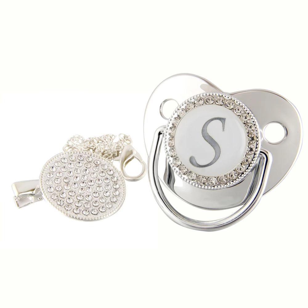 Соска-пустышка детская, серебристая, 26 букв, Со стразы