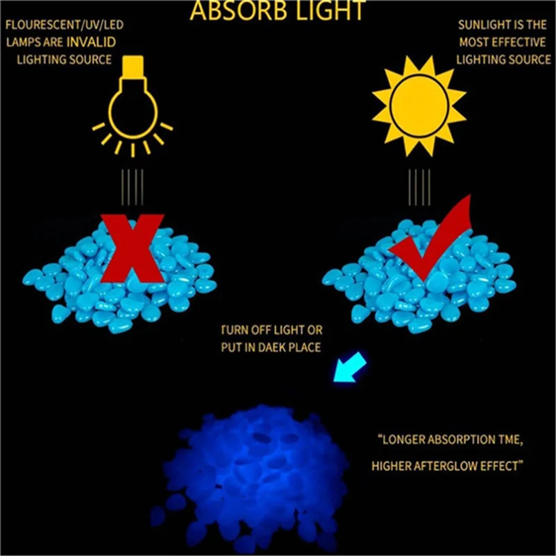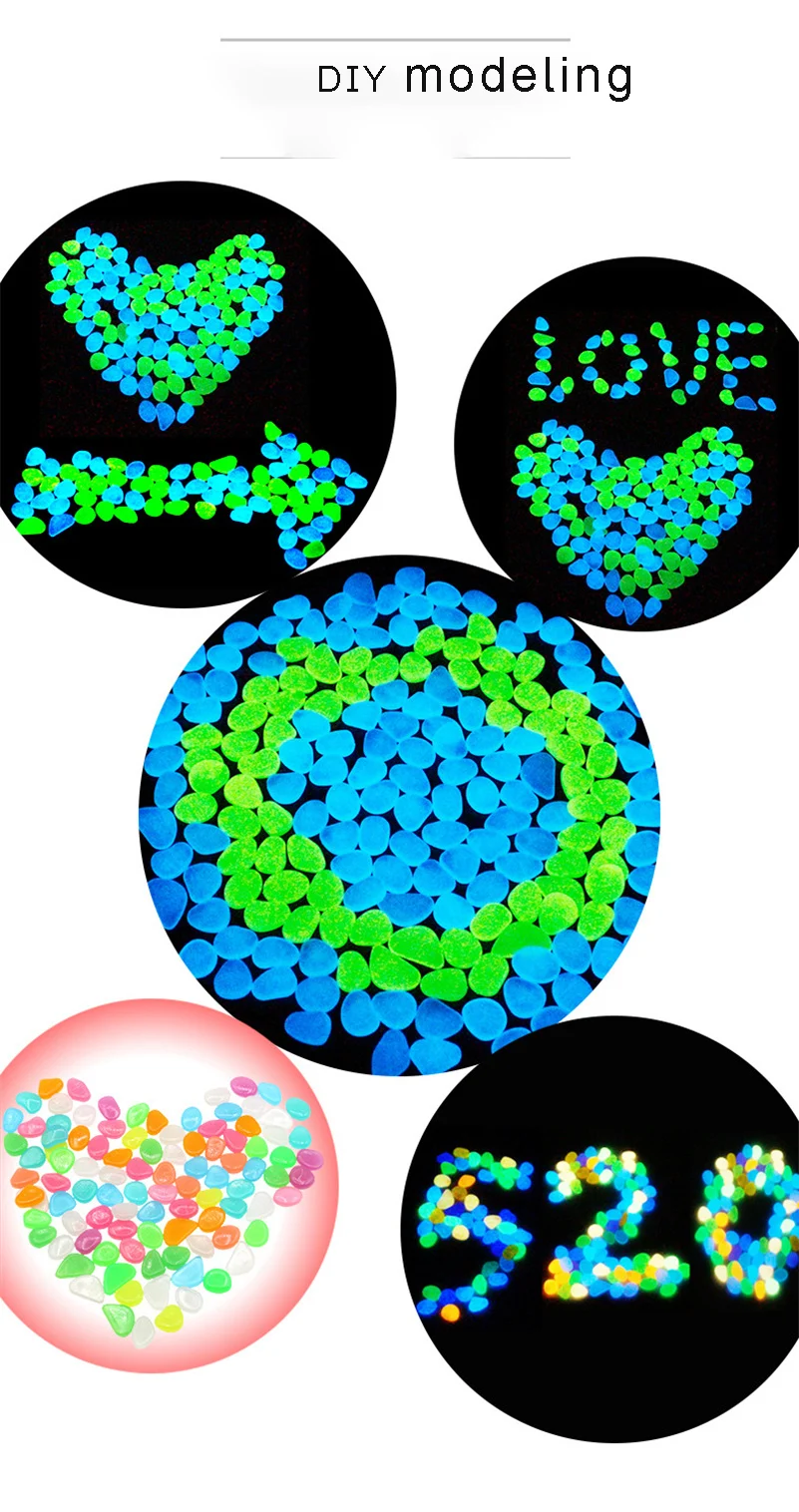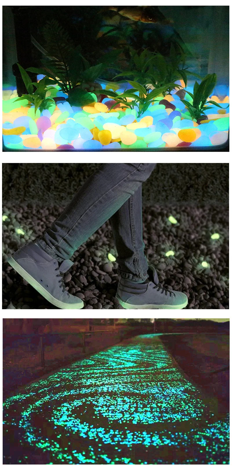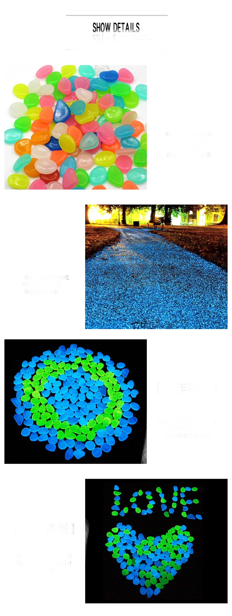 100 шт./пакет светящиеся камушки флуоресцентные гравили камни светится в темноте для украшения садового двора светящиеся камушки светящиеся для аквариума рыб