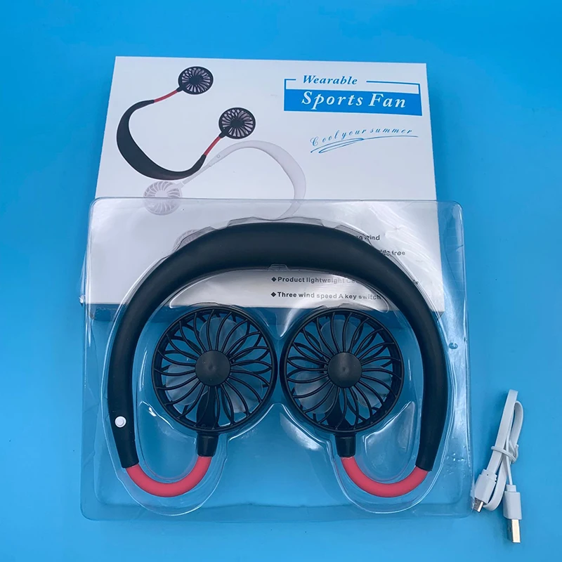 Портативный подвесной вентилятор для шеи, USB Перезаряжаемый, без рук, холодный кулер, мини-вентилятор с двумя головками для дома и офиса, для спорта на открытом воздухе