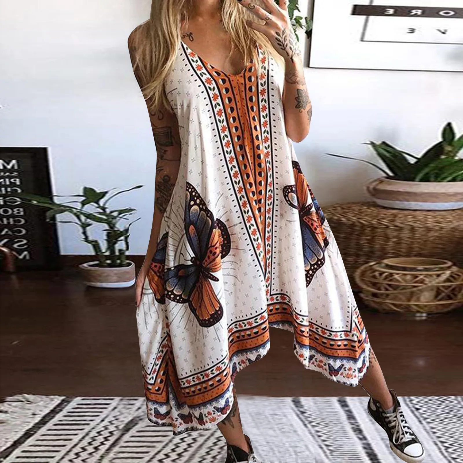 Женское Повседневное платье с принтом в стиле бохо, свободное мини-платье с v-образным вырезом и коротким рукавом