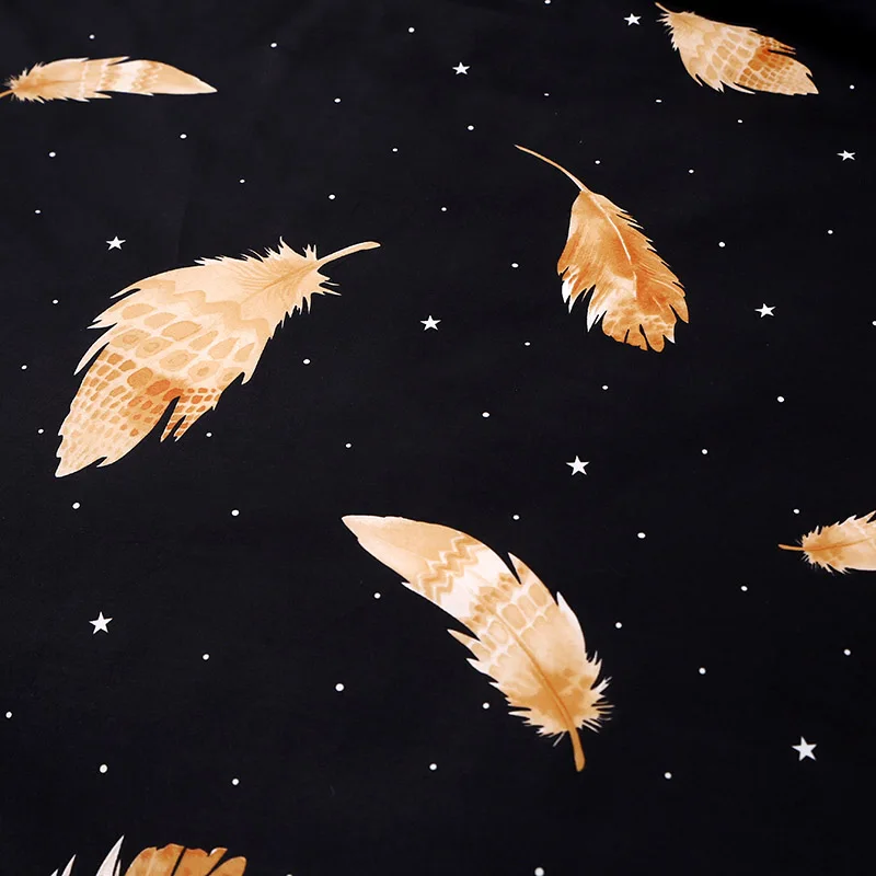 Комплект постельного белья черного цвета с принтом перьев и наволочкой