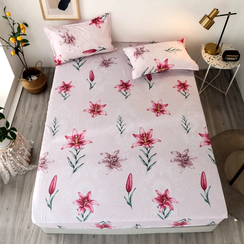 Комплект постельного белья из 3 предметов, наматрасник с резинкой и узором в виде перьев сасаны, для односпальнойдвуспальной кровати