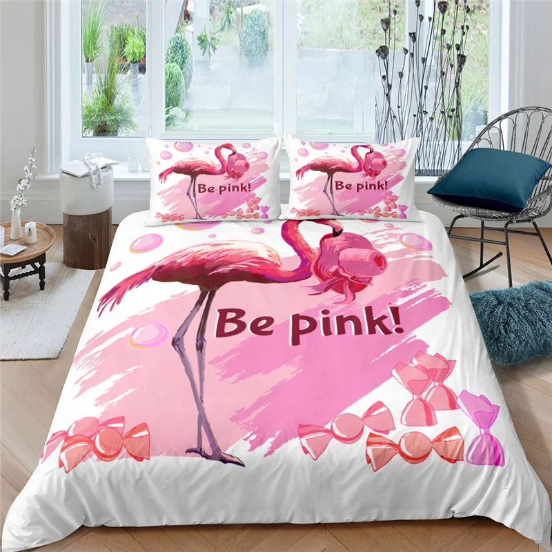 Комплект постельного белья с пододеяльником в виде розового фламинго