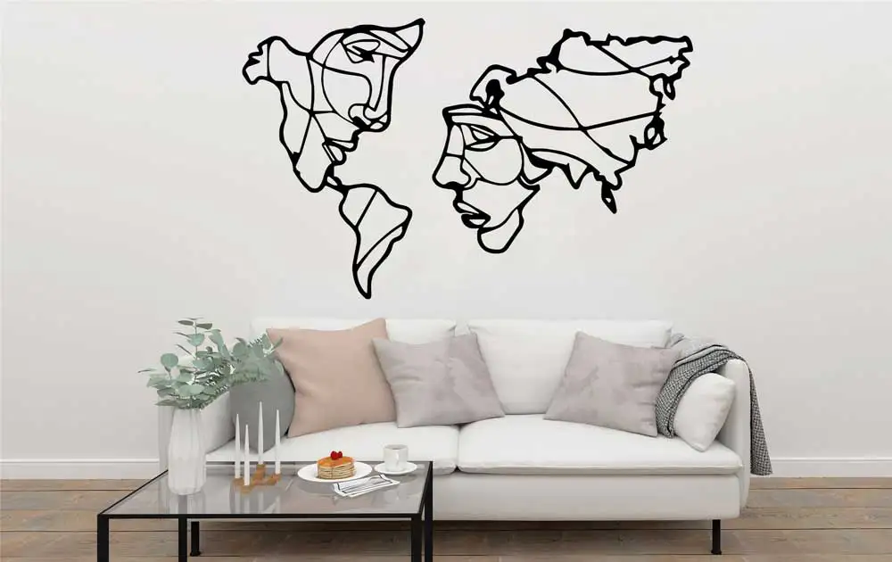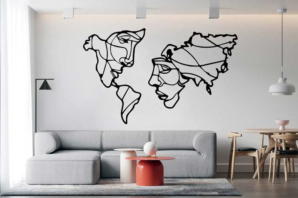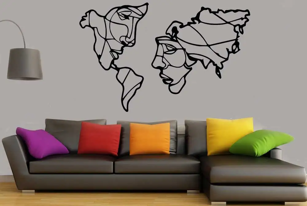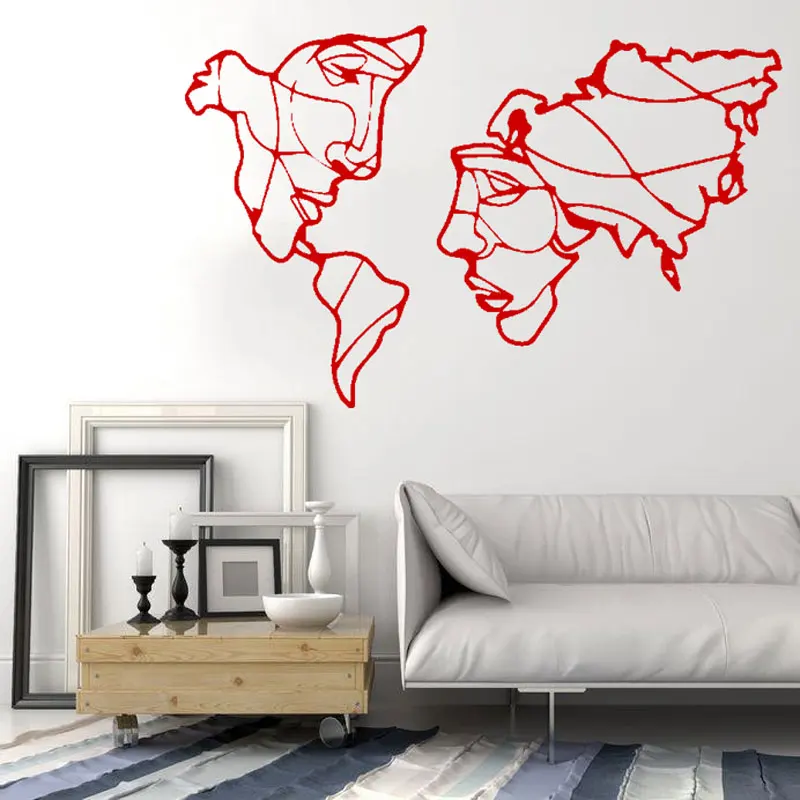 Настенные Стикеры с изображением карты мира, абстрактные лица, Дорожная карта, современное домашнее украшение для офиса, спальни, гостиной, подарочные Стеклянные виниловые наклейки на дверь