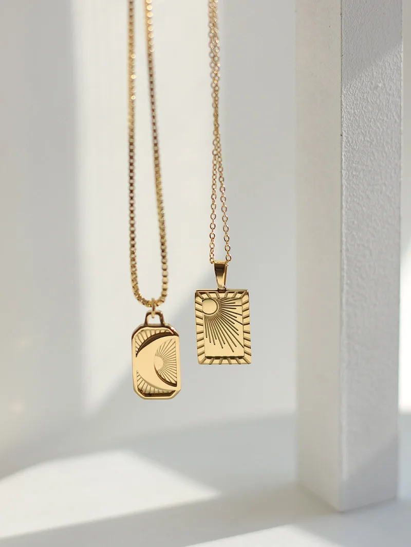 Ожерелье женское из нержавеющей стали с подвеской солнце и луна