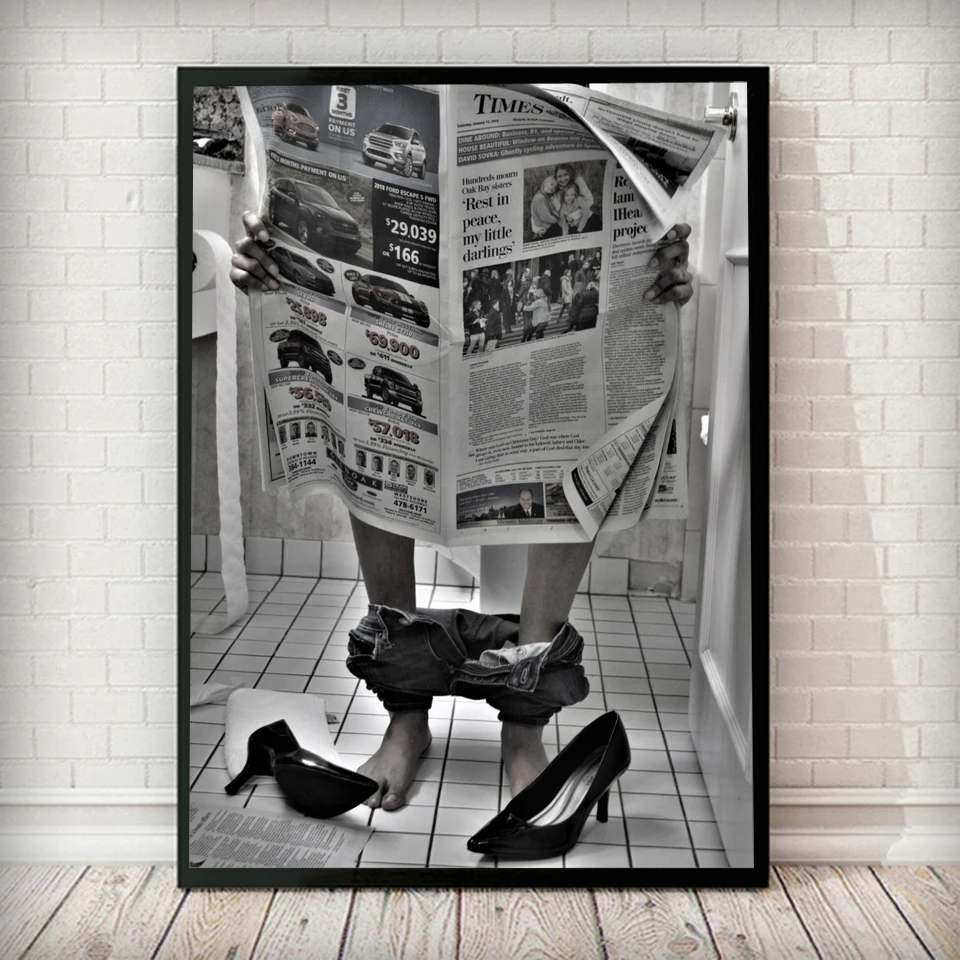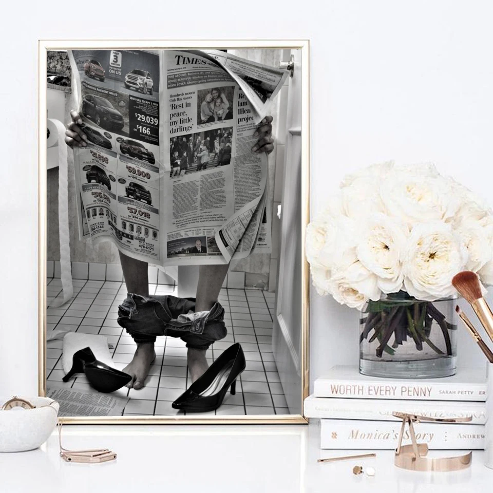 Модный Туалет сексуальная женщина Газета чтения винтажная картина п...