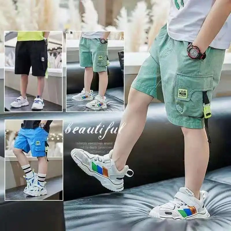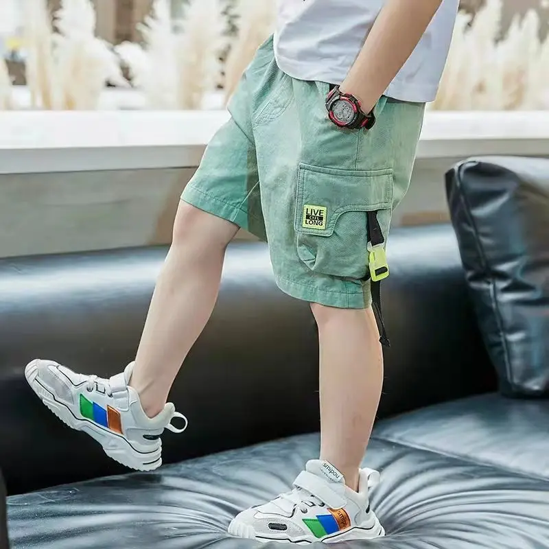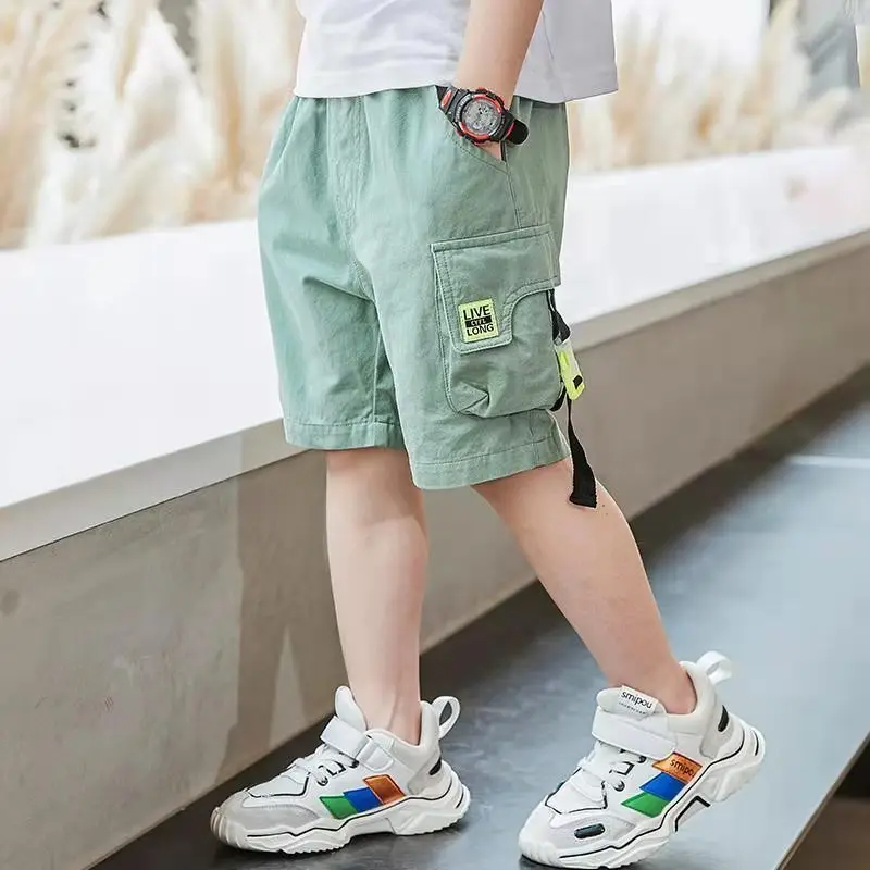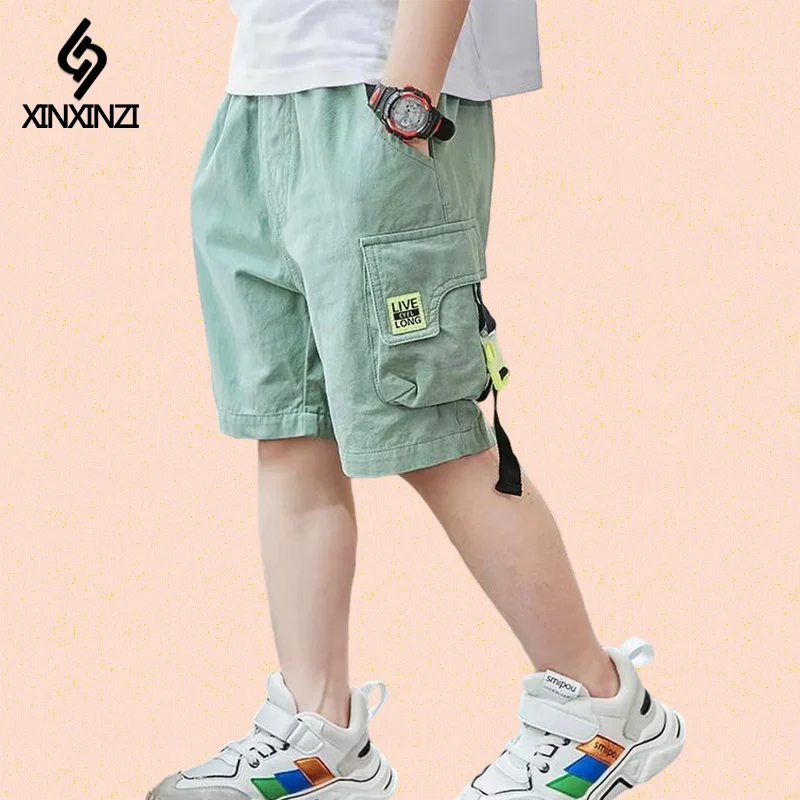 Шорты для мальчиков, летние свободные штаны, подростковые брюки, шорты, повседневные короткие брюки-карго для мальчиков, Детские хлопковые штаны с эластичным поясом XXZ78