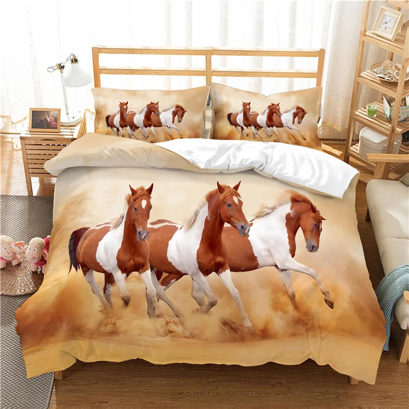 Комплект постельного белья из 23 предметов, роскошный удобный текстиль с 3D рисунком животных, лошадей, наволочка, домашний текстиль, размеры Queen и King