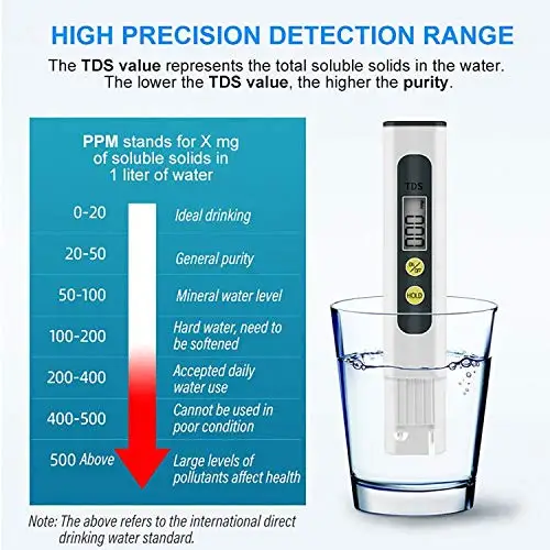 TDS-метр, тестер качества воды, ручка-фильтр с диапазоном измерения 0-9999 ppm, идеальный ppm-метр для питьевой воды, аквариумов