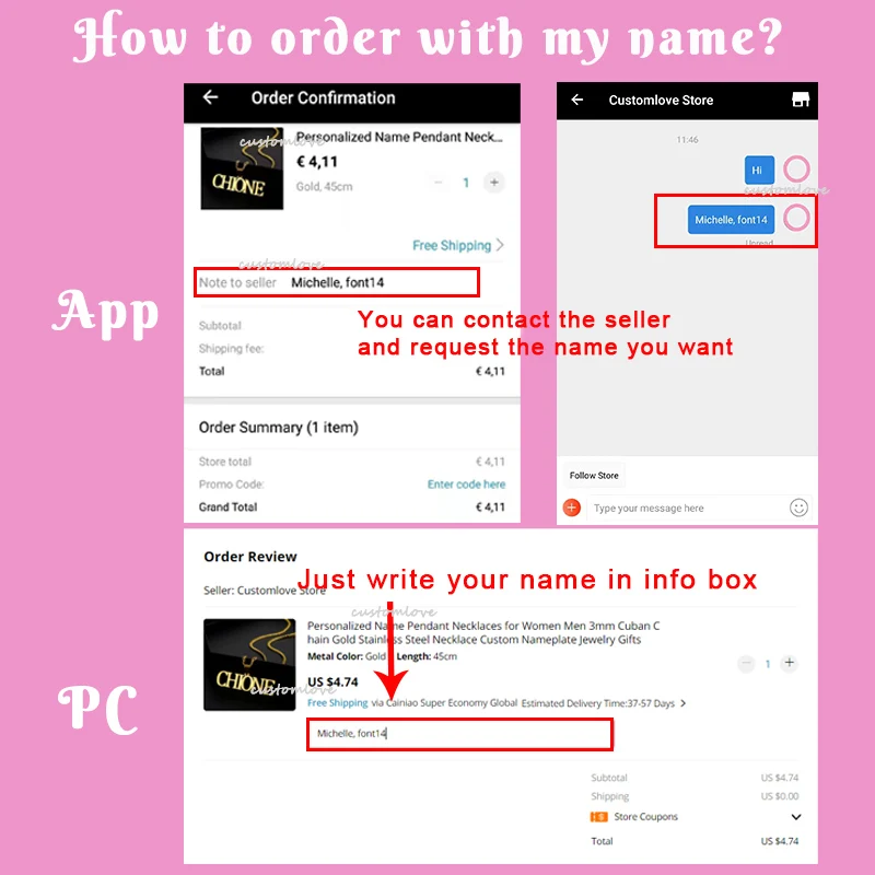 Ожерелье с именем на заказ, подвеска из золотой нержавеющей стали, ...