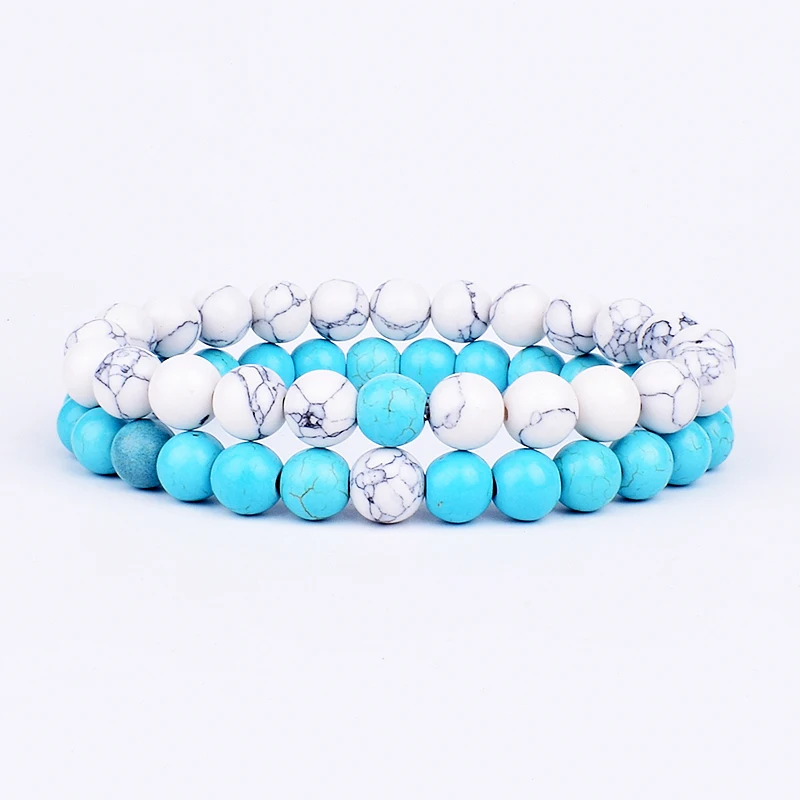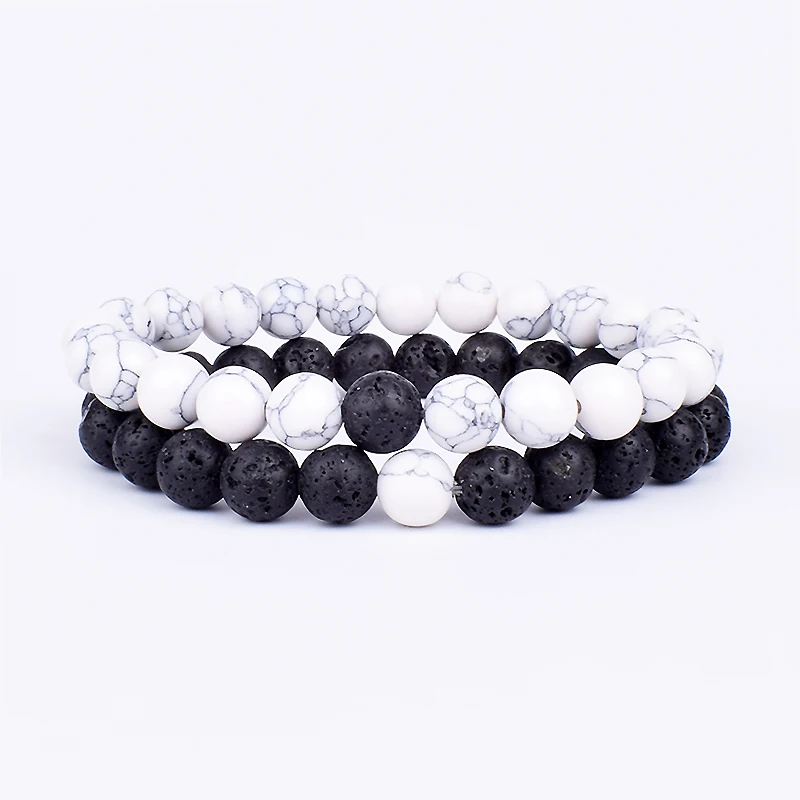 Парные браслеты на расстоянии, белые бирюзы, натуральный лавовый ка...