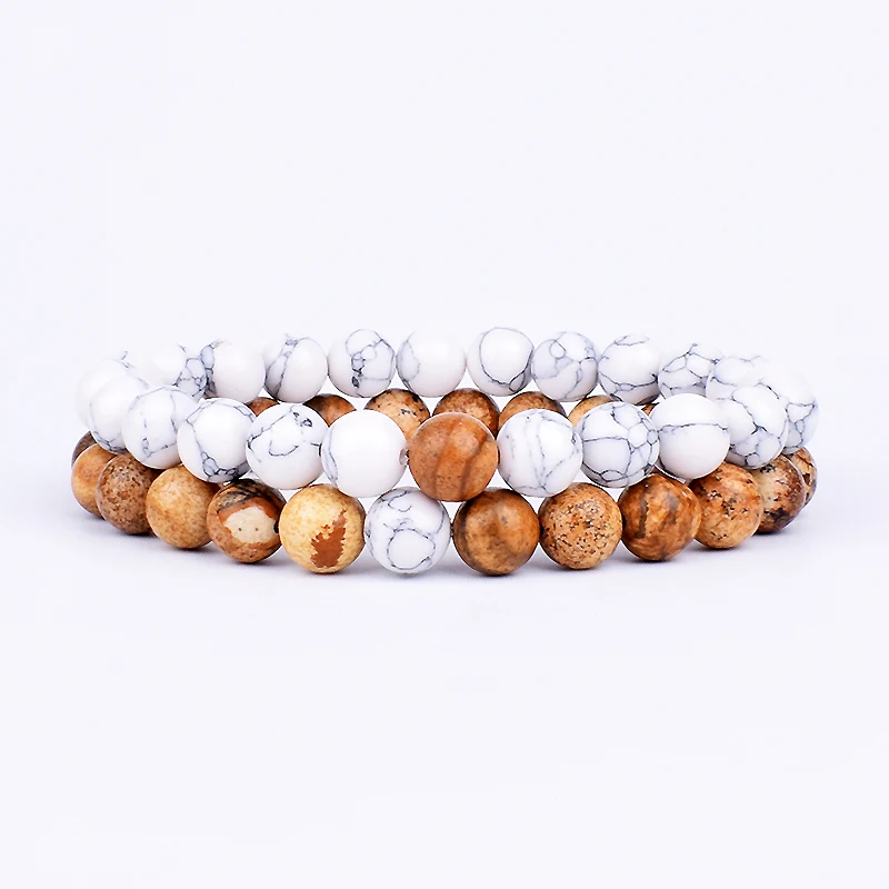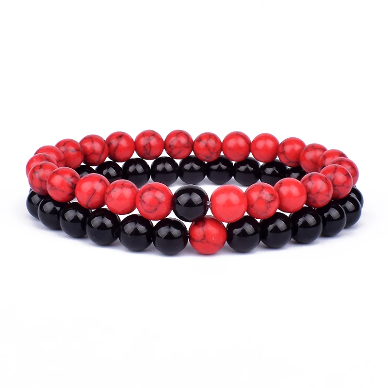 Комплект браслет пары расстояние черный, Белый цвет натуральный лавовый камень тигровый глаз бисерные браслеты для йоги для мужчин и женщин, вставку внутрь эластичного ремешка ювелирные изделия
