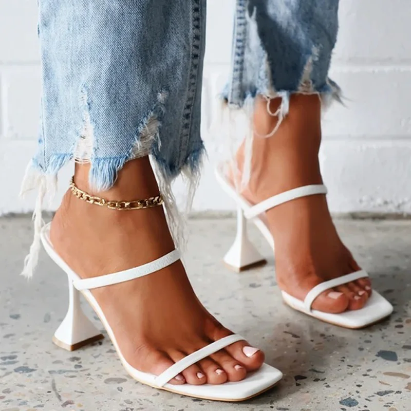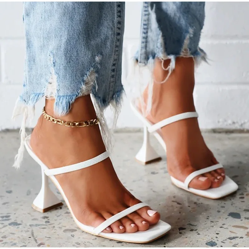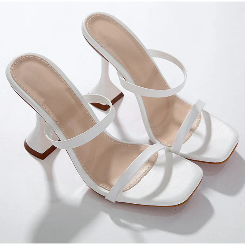 Женские шлепанцы с открытым носком, на высоком каблуке, летние, 2021