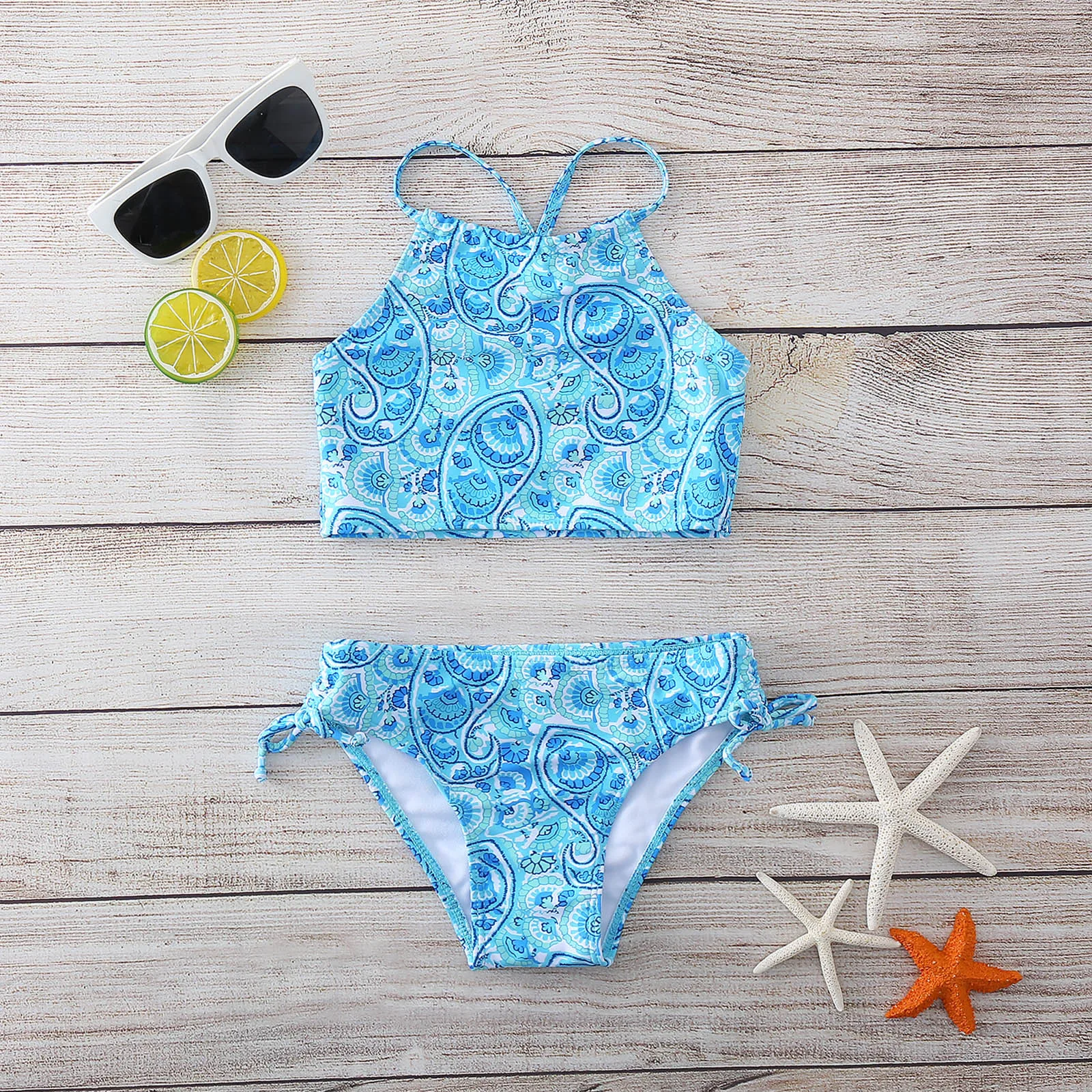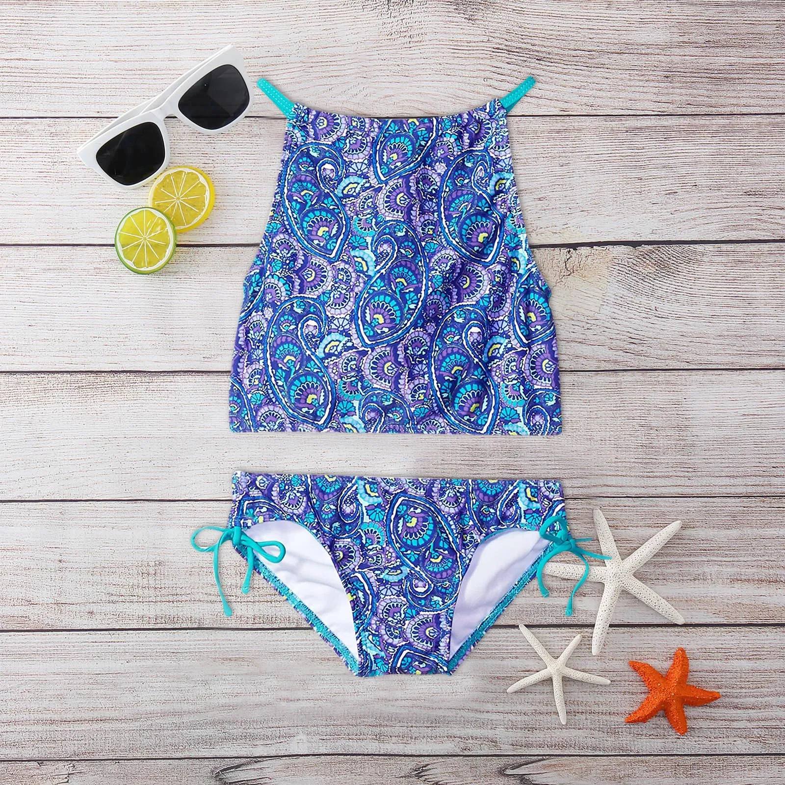 Летняя одежда для купания для девочек, в винтажном стиле; Рыбы для малышей детский купальник-бикини пляжные спортивные танкини для девочек, комплект из 2 предметов, купальный костюм, пляжная одежда От 8 до 13 лет