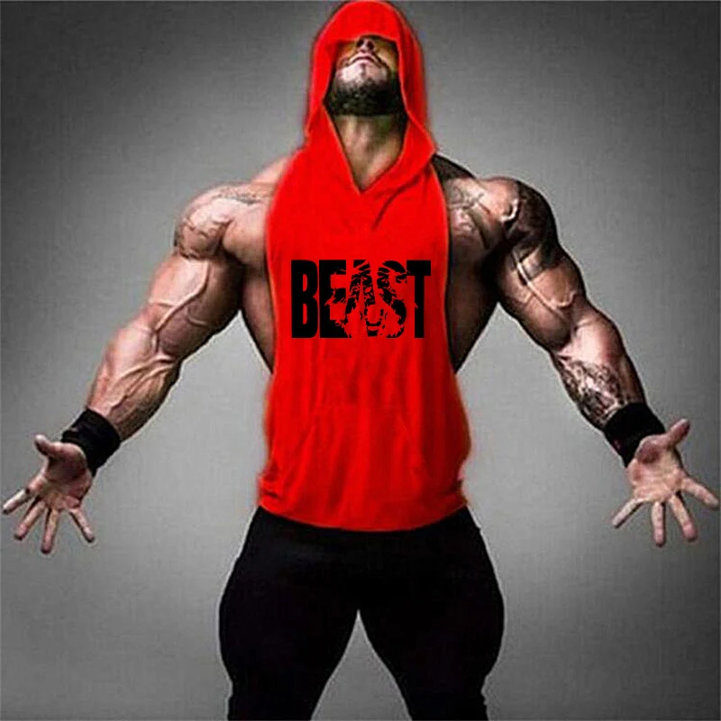 Мужской спортивный хлопковый жилет для бега BEAST Muscle Brothers, свободная дышащая толстовка без рукавов с капюшоном, рубашка с вырезом лодочкой, брендовый жилет