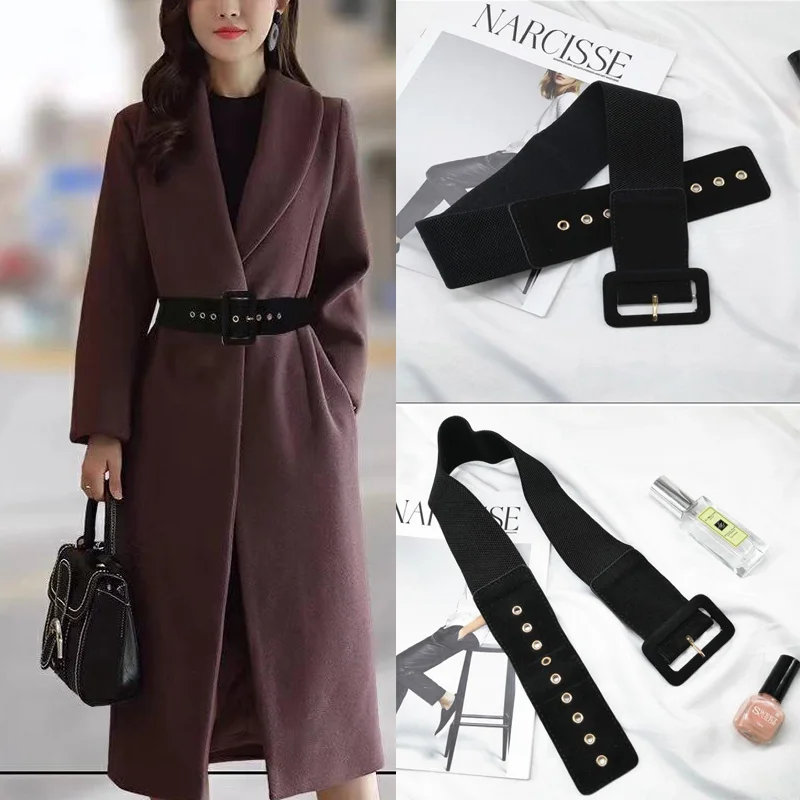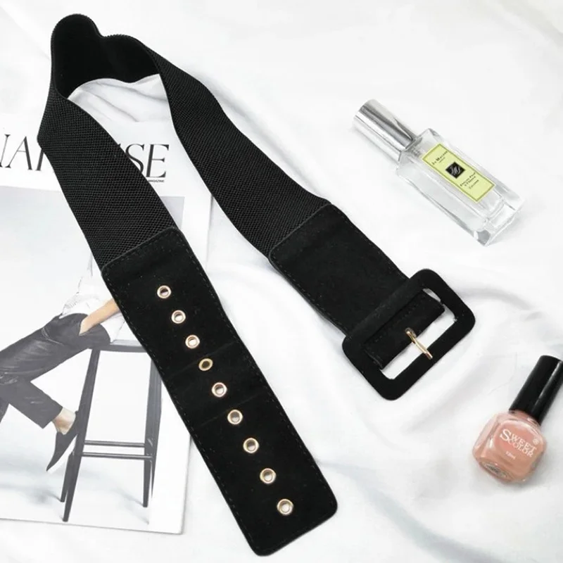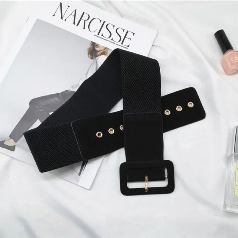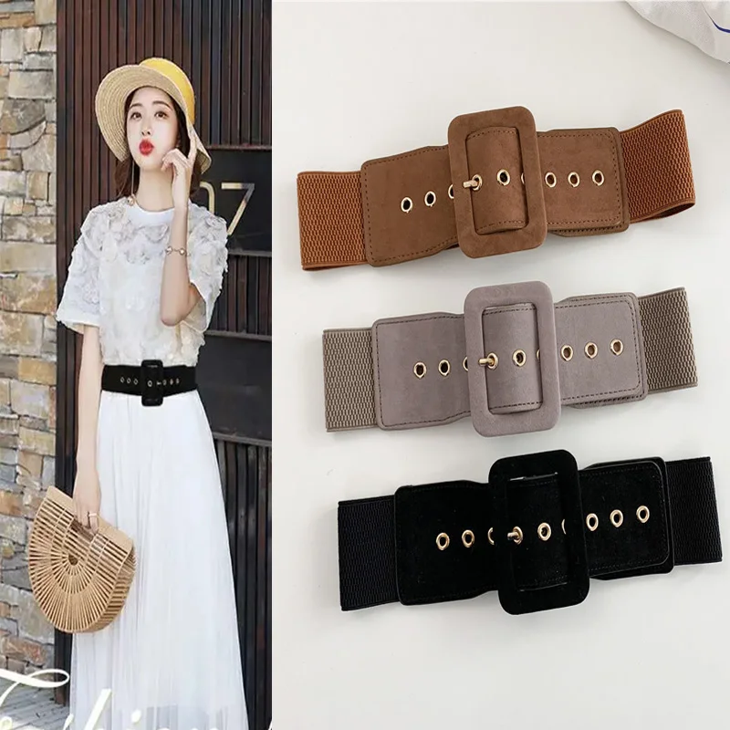 Ремень женский с квадратной пряжкой, модный эластичный широкий бархатный ремень для платвечерние ев, вечерний Повседневный ремень разных цветов, Женская Талия