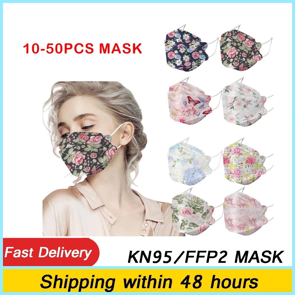 Маска FFP2MASK с цветочным принтом, 1050 шт., маска KN95 для рыбы, многоразовая маска для лица с фильтром, Пылезащитная маска для взрослых KN95MASK FFP2 Maska CE FPP2