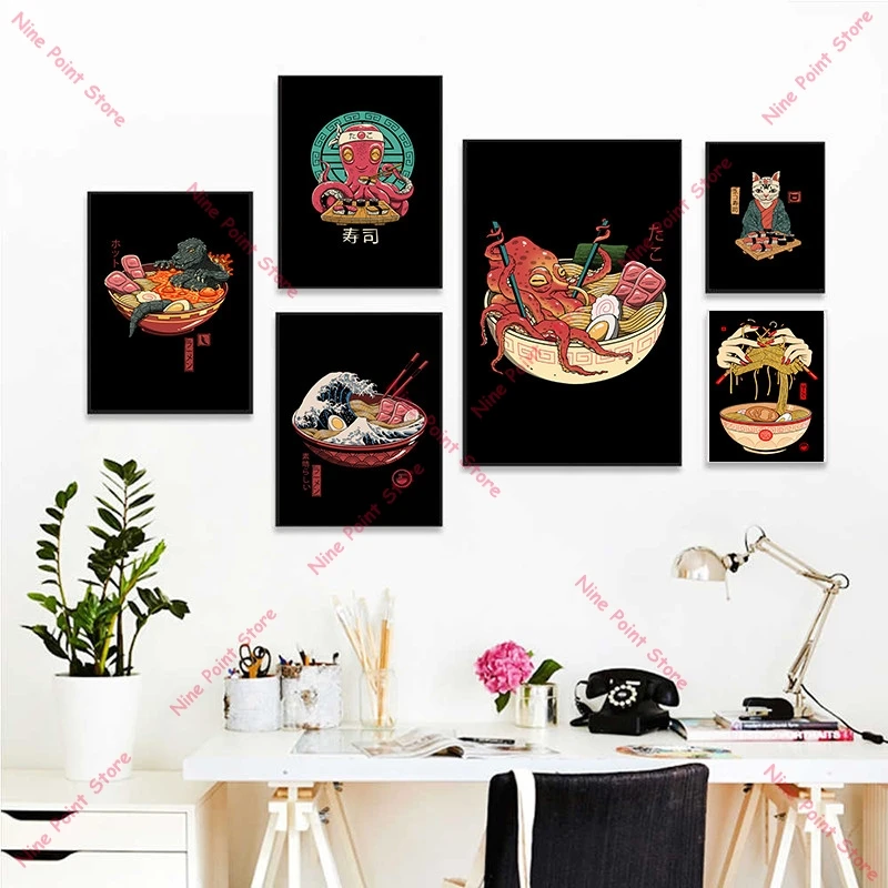 Постер и принты японского самурая кошка рамен Картина на холсте картины на стену классический декоративный домашний декор Obrazy