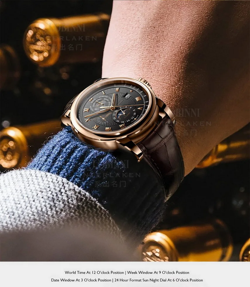Швейцарские мужские часы LOBINNI, Мужские автоматические часы, роск...