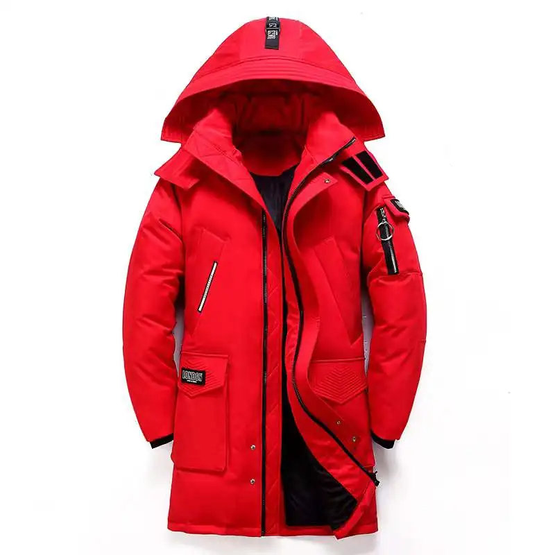 Мужская длинная куртка на белом утином пуху, красная, синяя, черная...