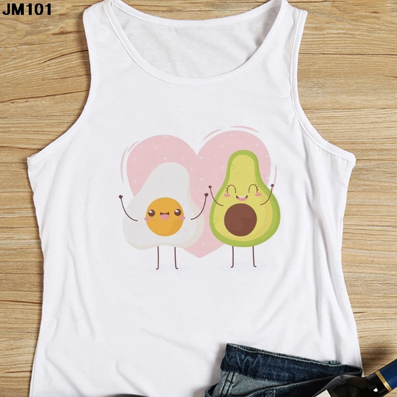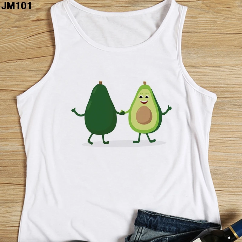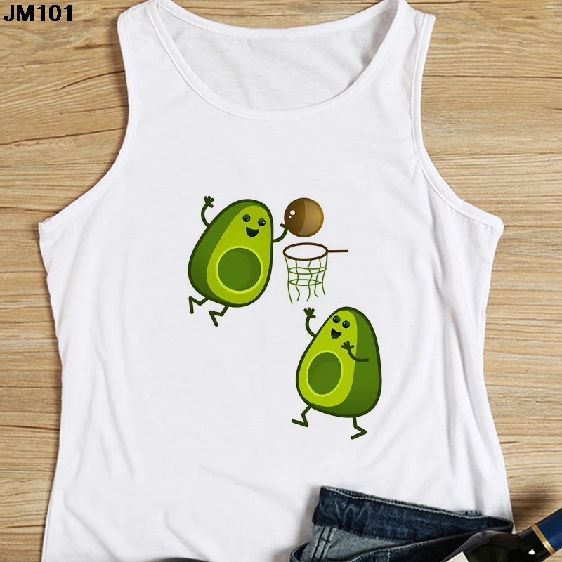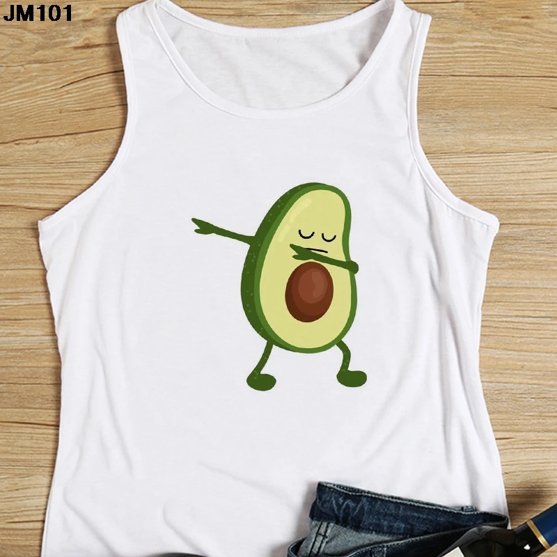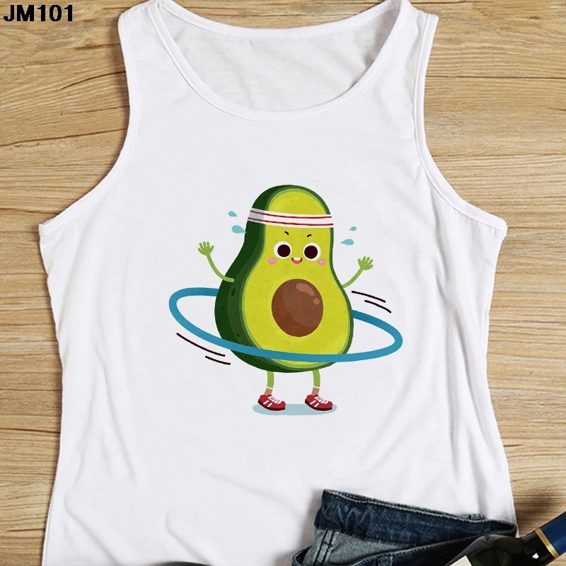 Майка женская с забавным принтом авокадо, топ без рукавов, Модная белая рубашка в стиле Харадзюку, лето